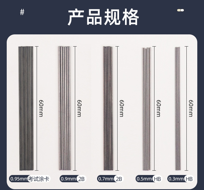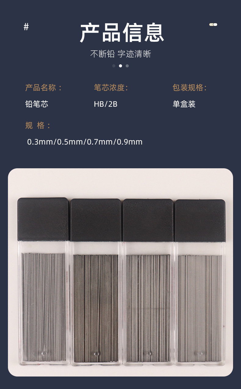 厂家批发定制树脂铅芯HB 2B0.5mm0.7mm0.9mm芯径替换芯自动笔芯考