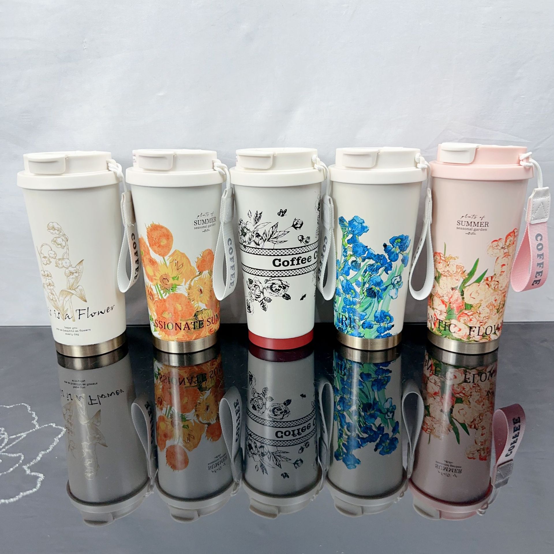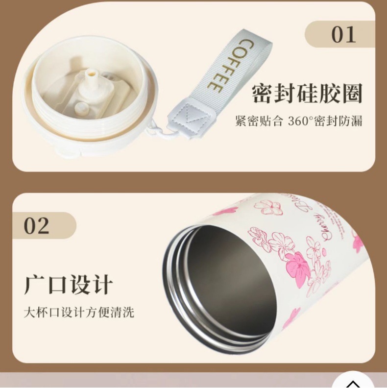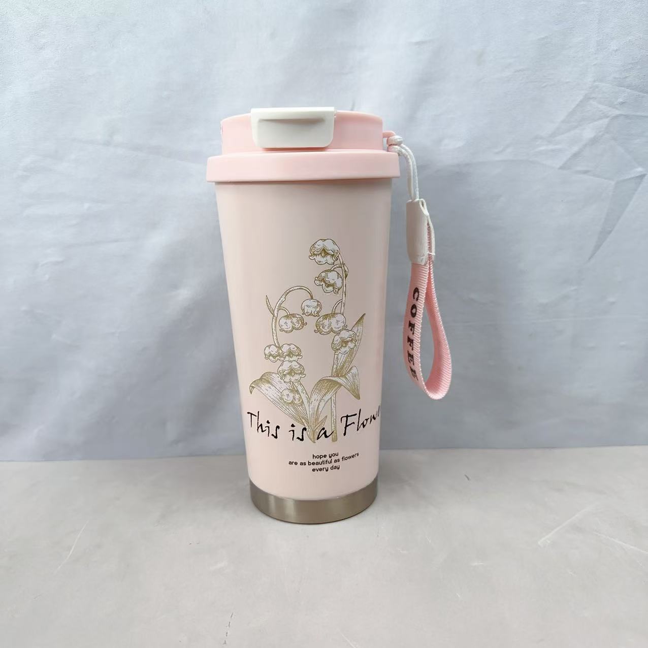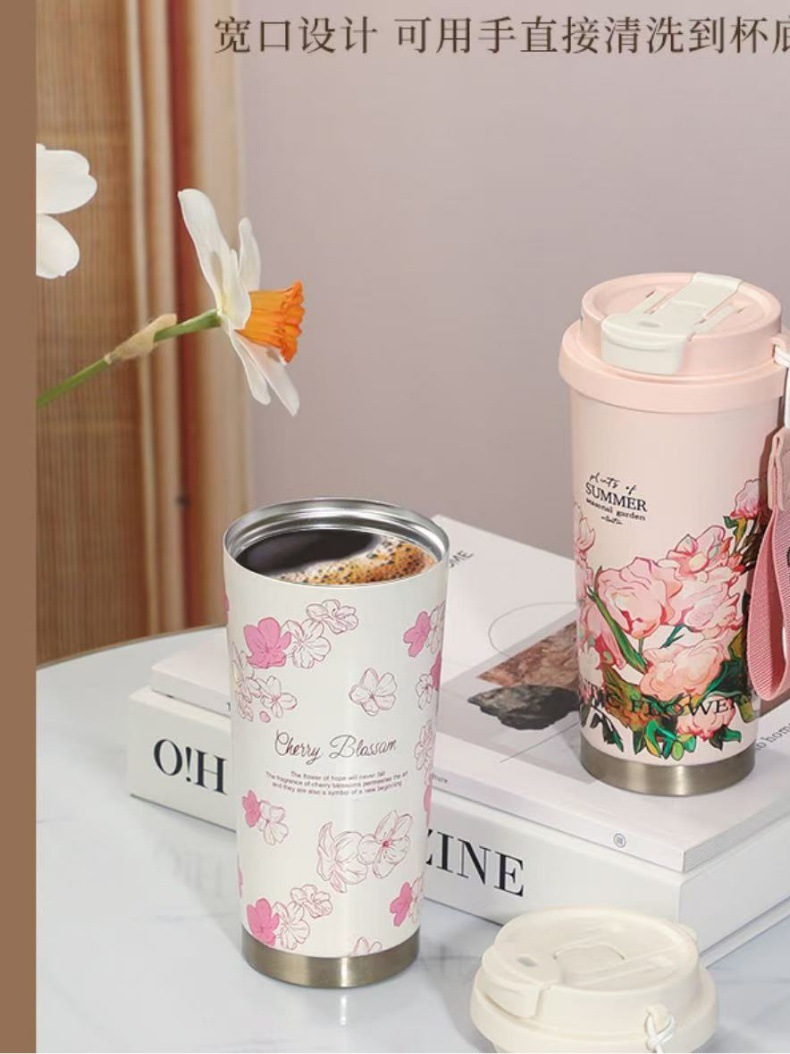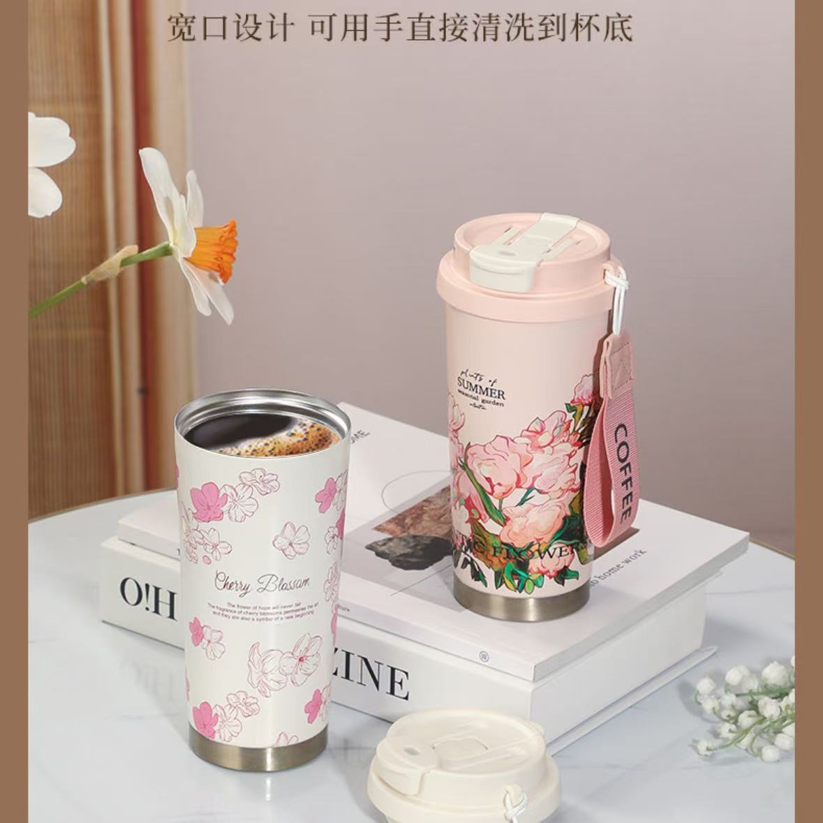新款铃兰花双饮咖啡杯316不锈钢真空保温杯女水杯高颜值随手杯子