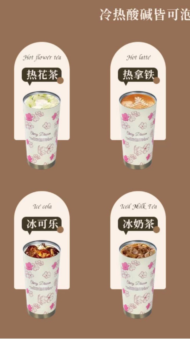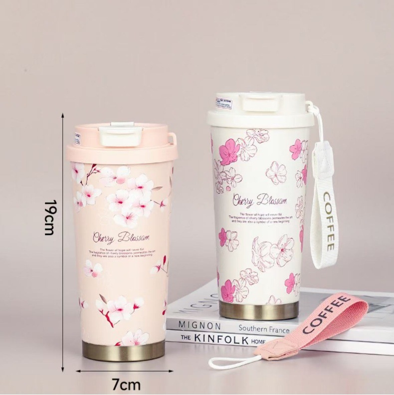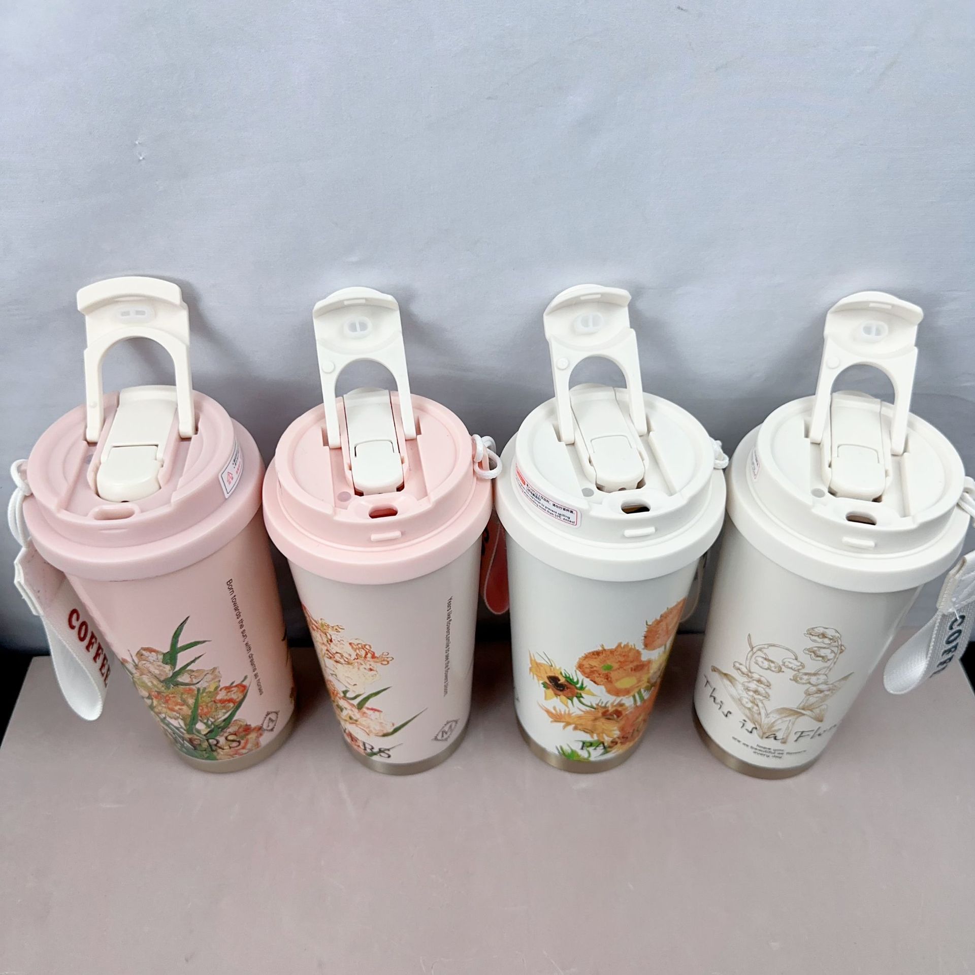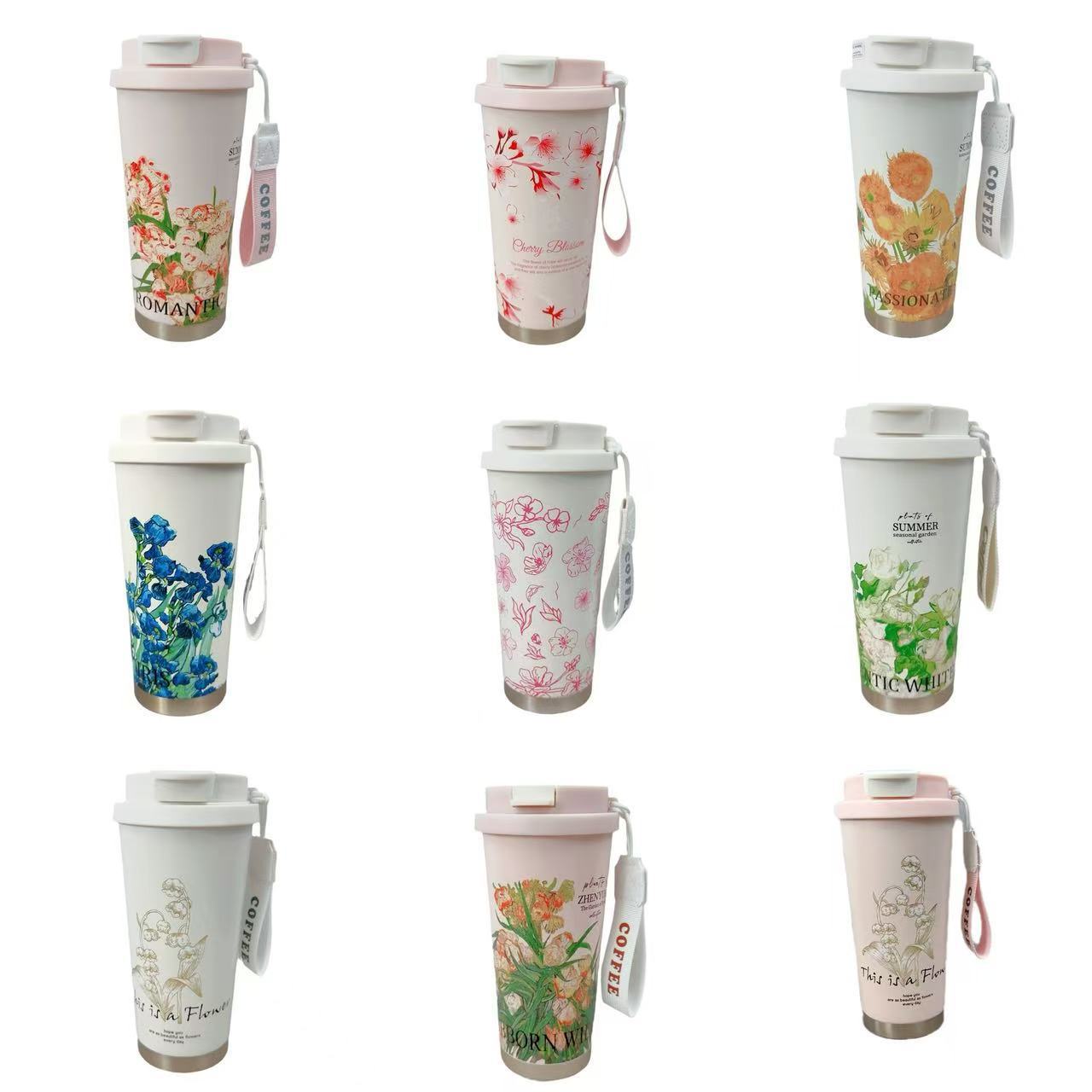 新款铃兰花双饮咖啡杯316不锈钢真空保温杯女水杯高颜值随手杯子