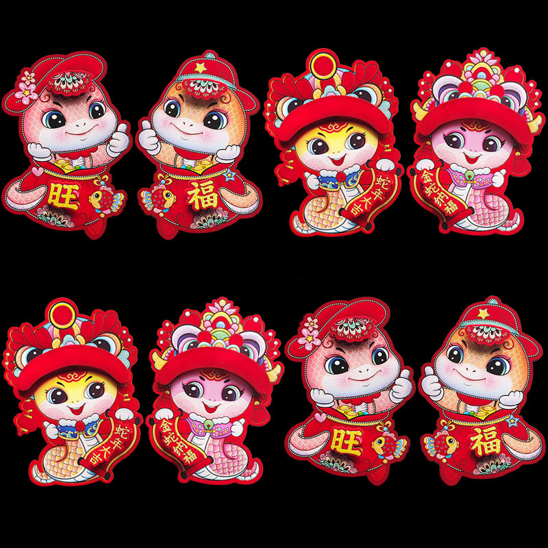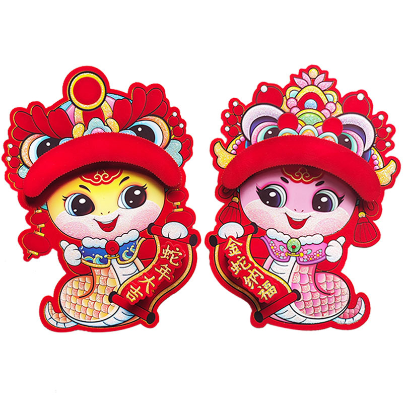 生肖门贴2025蛇年立体植绒撒粉对贴新款新年装饰春节过年年画批发