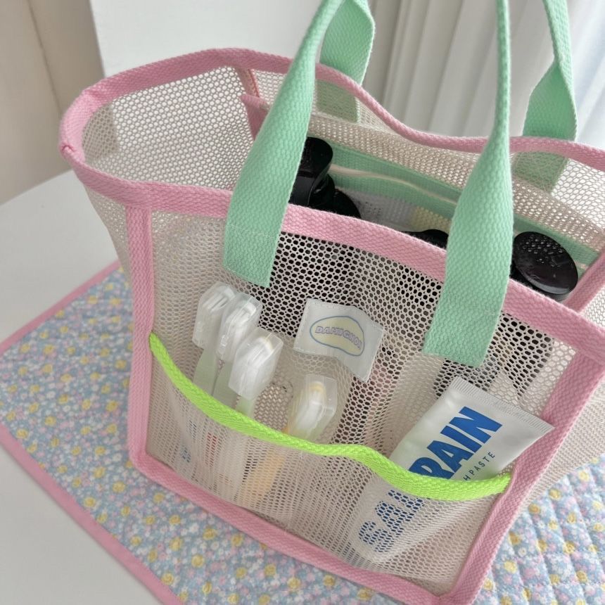 韩国ins风沙滩包儿童玩具网格手提收纳袋户外旅行游泳洗漱收纳包