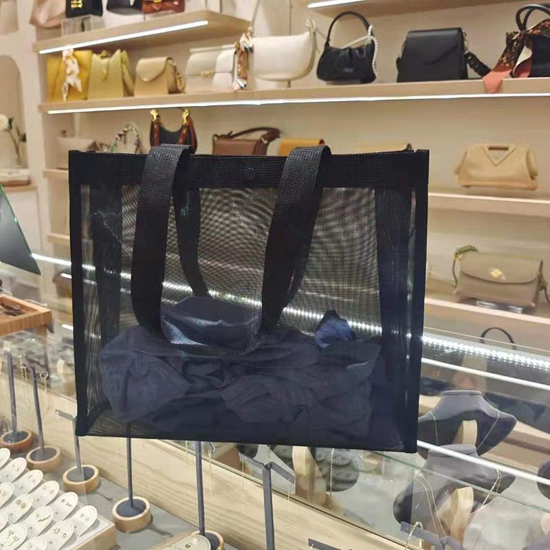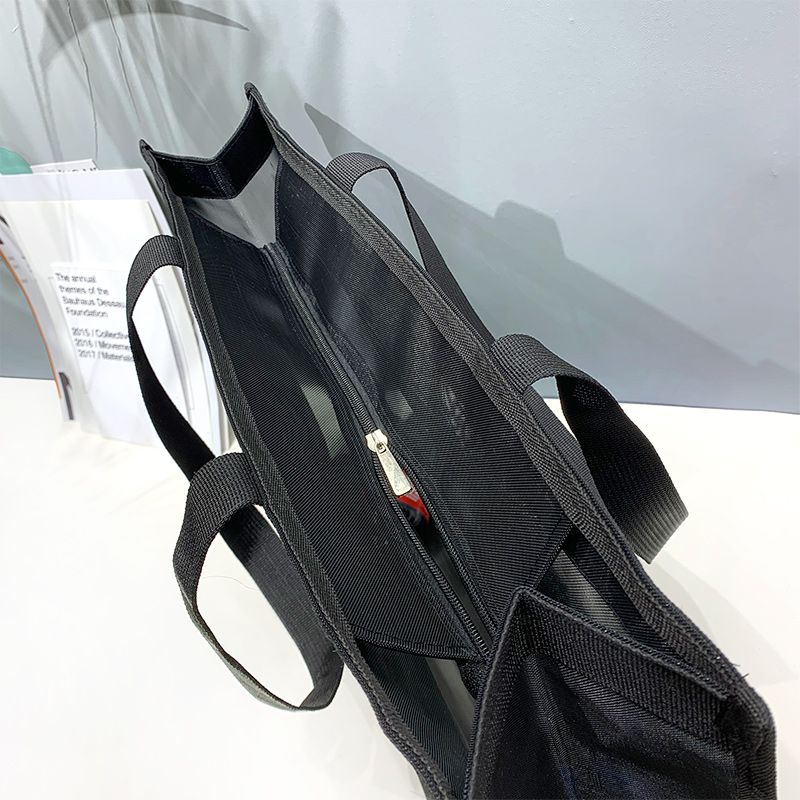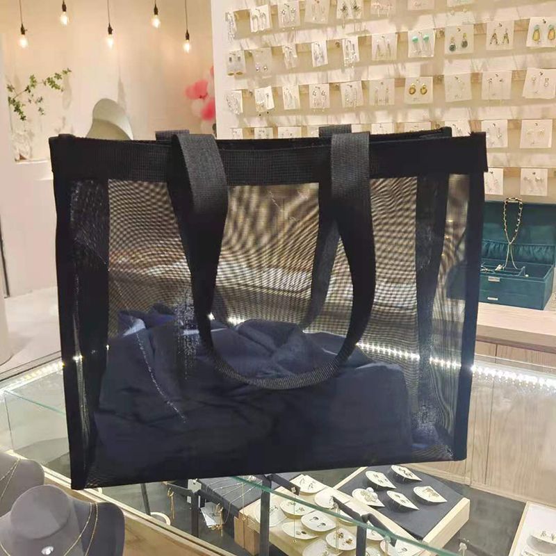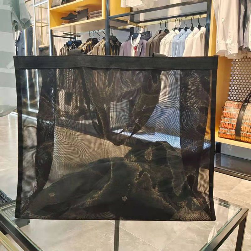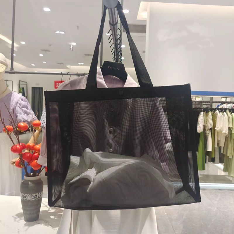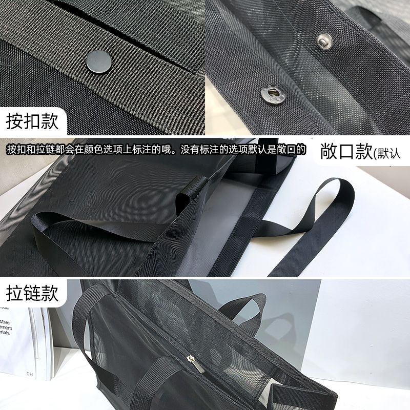 黑色网纱大容量单肩尼龙手提包网布时尚购物袋沙滩旅行包定制LOGO