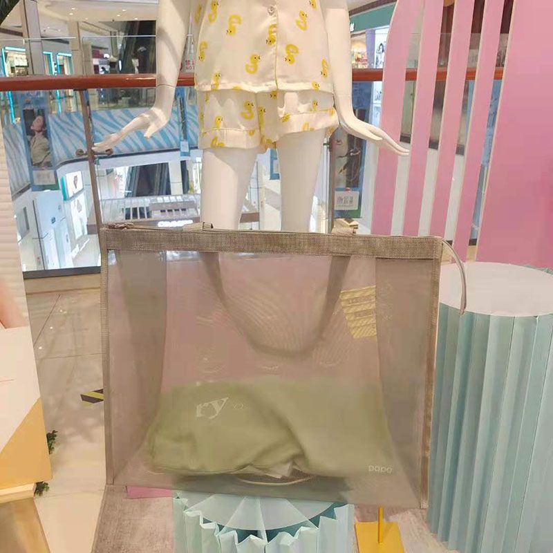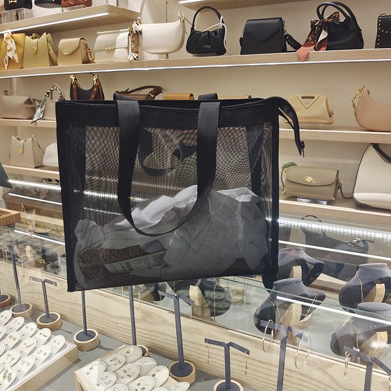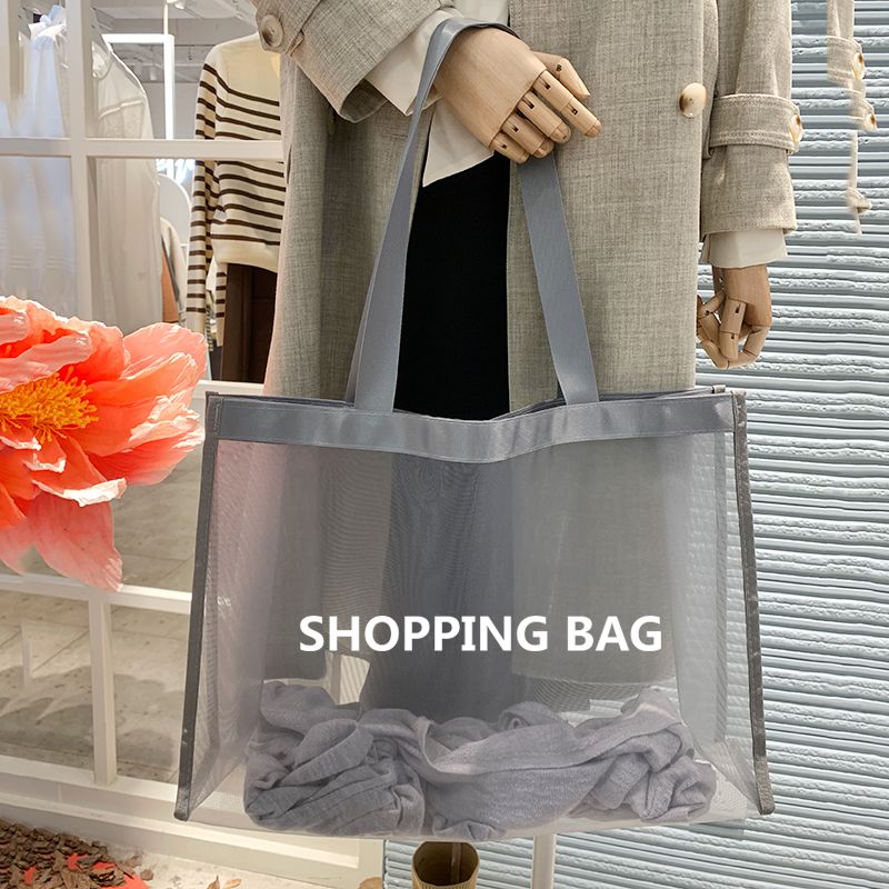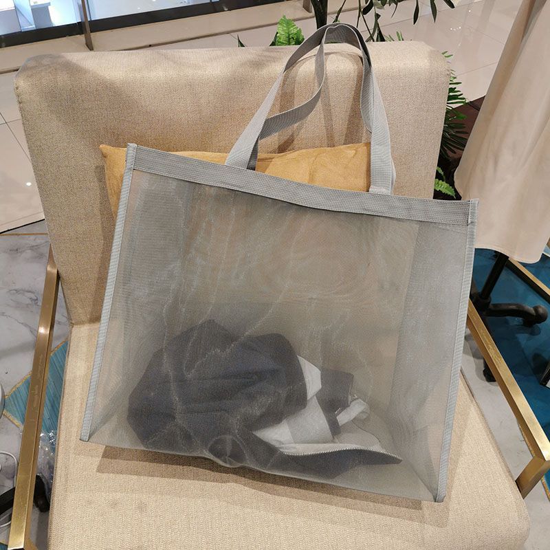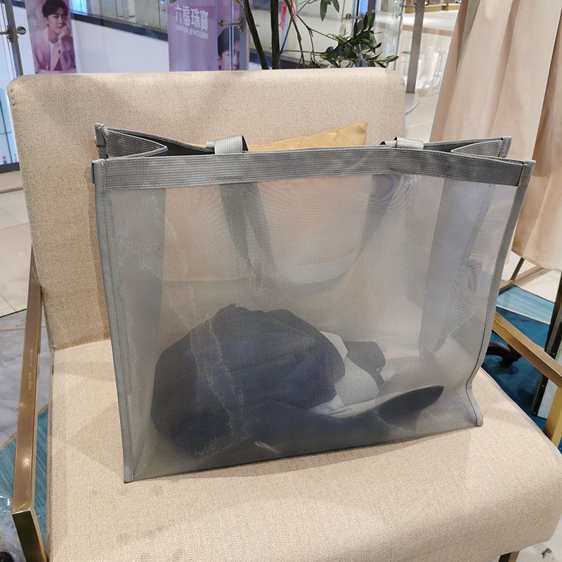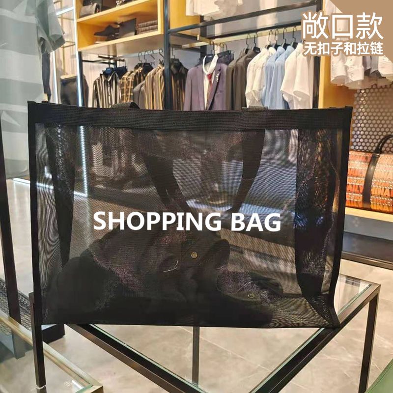 黑色网纱大容量单肩尼龙手提包网布时尚购物袋沙滩旅行包定制LOGO