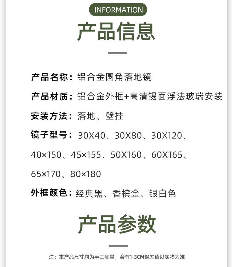全身落地镜子网红简约少女家用试衣镜卧室穿衣镜壁挂贴墙ins挂墙
