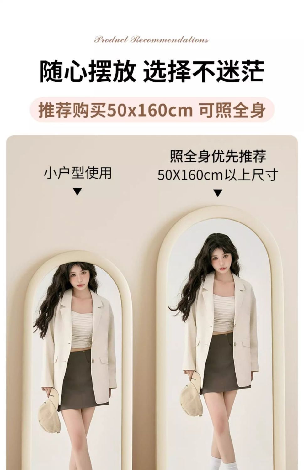 网红简约全身镜落地镜北欧ins风试衣穿衣镜家用女生卧室挂墙镜子