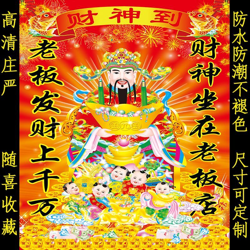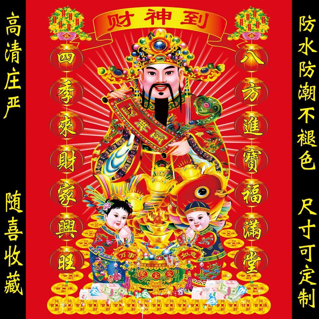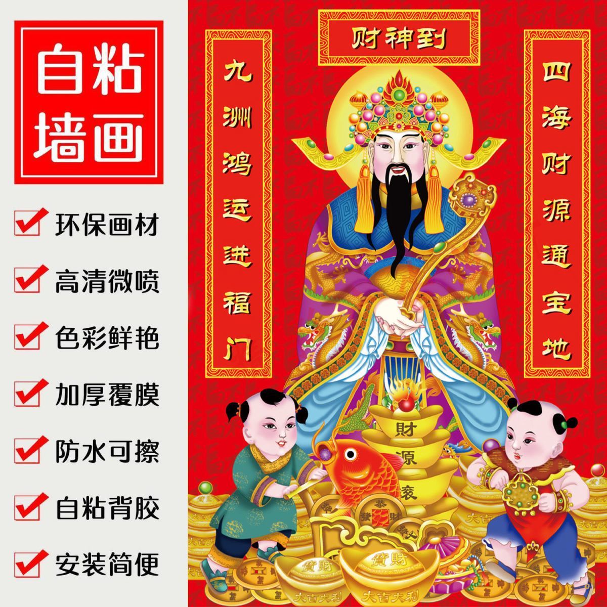 2024财神爷新款财源广进财神到海报中堂画年画装饰画墙贴壁画自粘