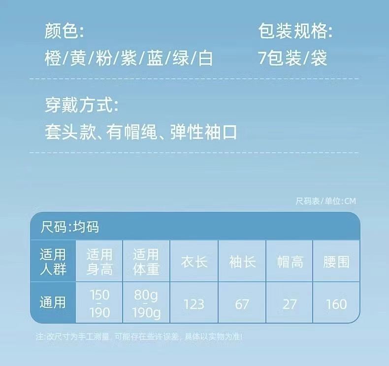 | 独立包装+全身+帽绳【7片】现货70万片 | USD $2.6 | 99999 piece available |
