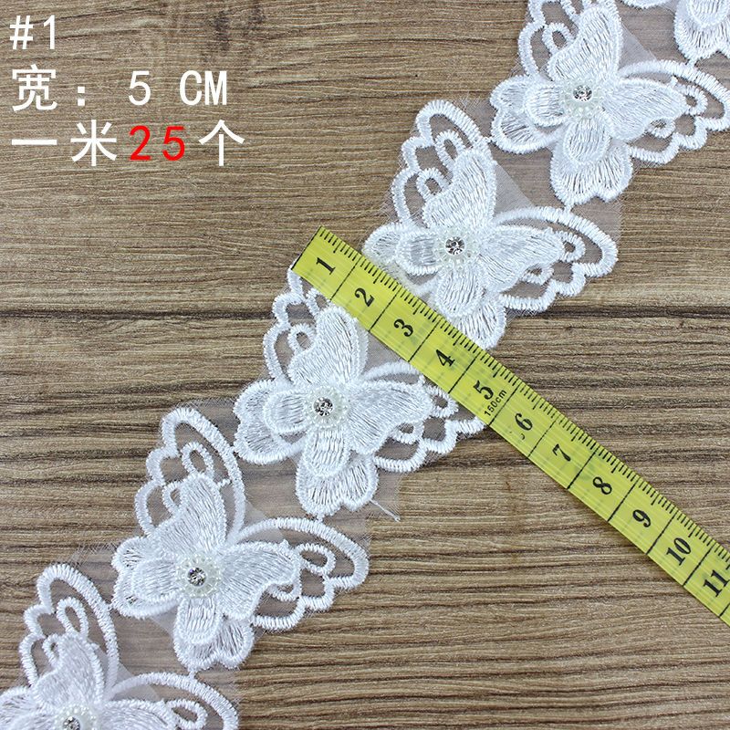 双层蝴蝶钉珠花婚纱礼服装饰条码diy头饰领口装饰花边窗帘下摆布