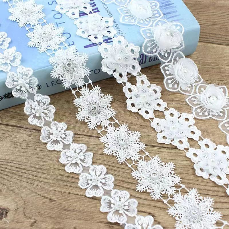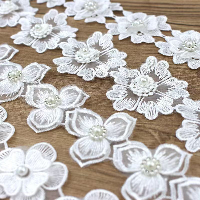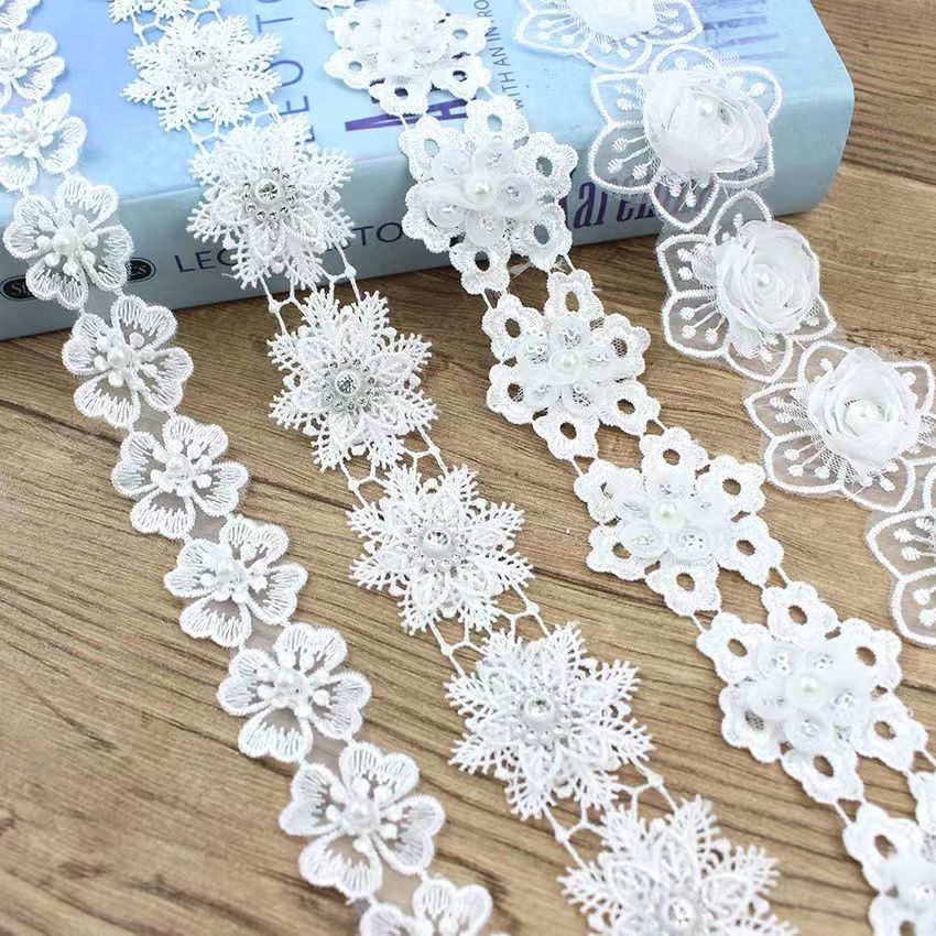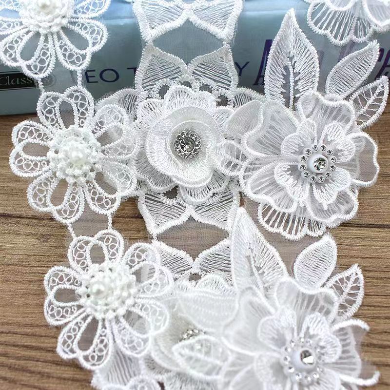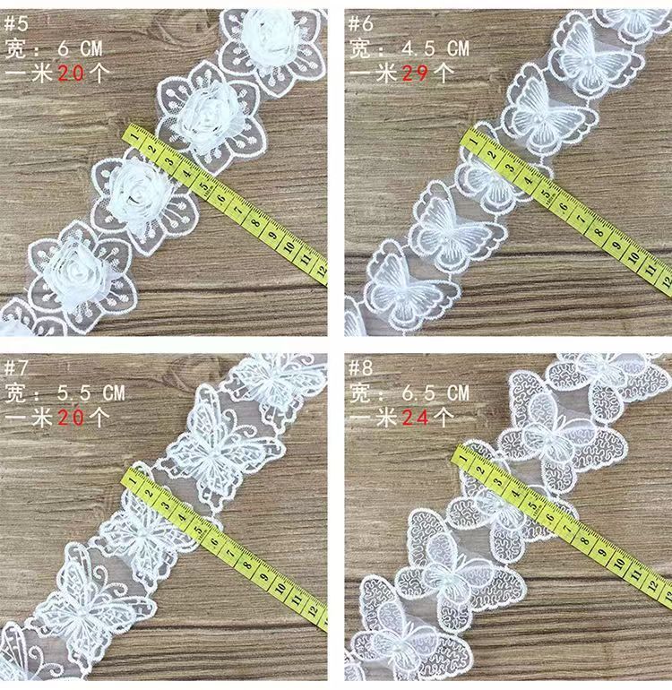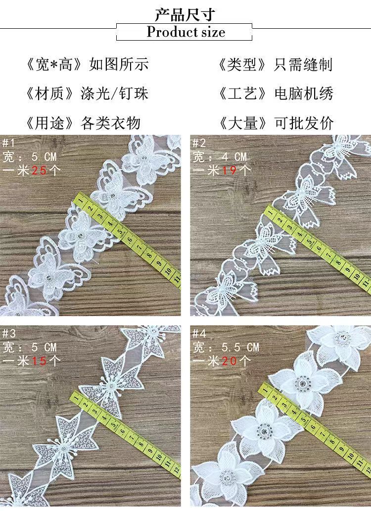 双层蝴蝶钉珠装饰材料刺绣diy婚纱礼服衣服花边白色蕾丝窗帘修补