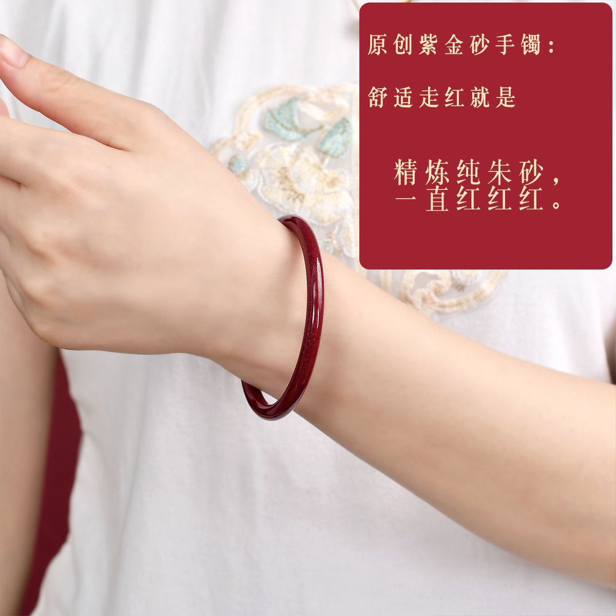 朱砂手镯本命年叮当镯女式天然保真紫金砂朱砂手镯红色中秋节礼物