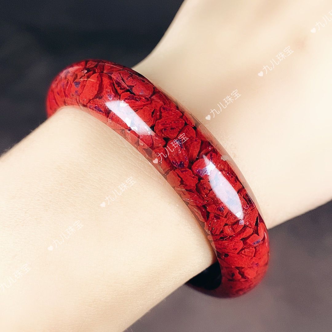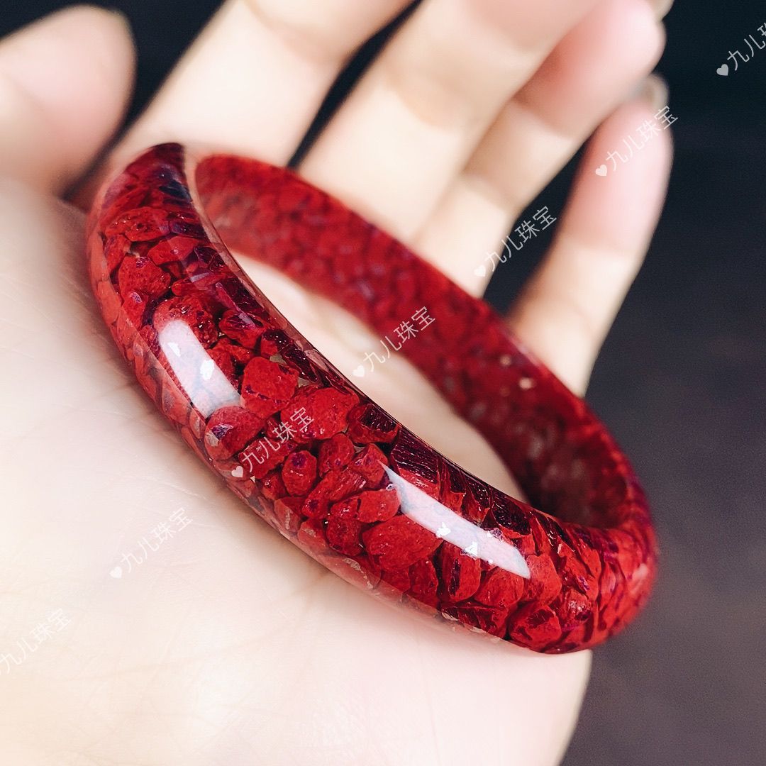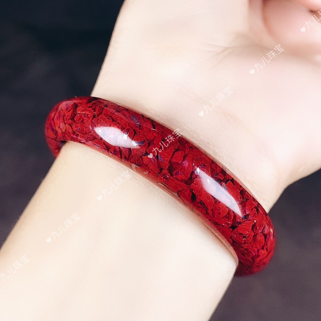 天然原矿朱砂颗粒晶体砂原石手镯本命年妈妈朱砂宽镯子轮胎镯礼物