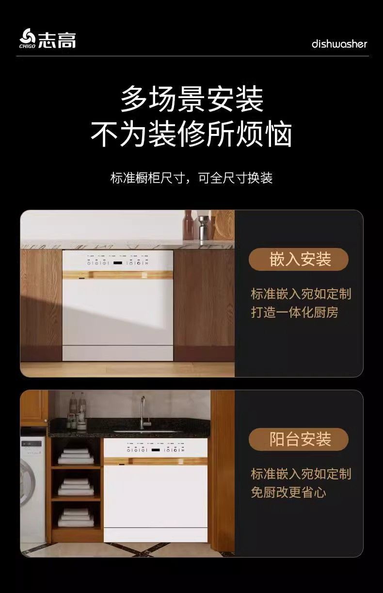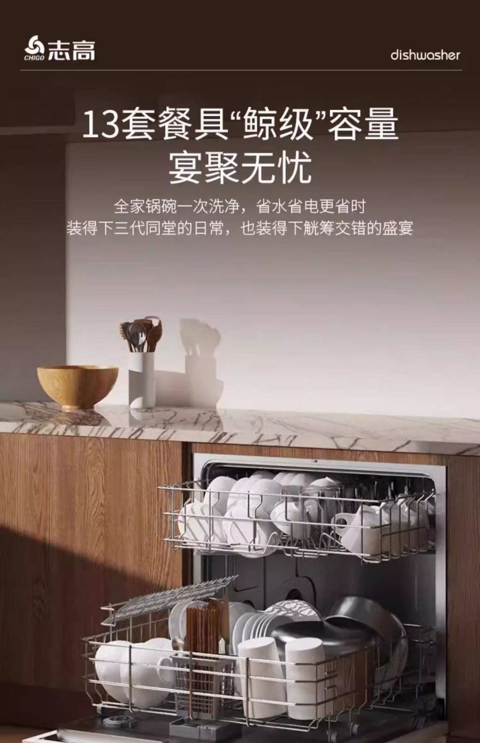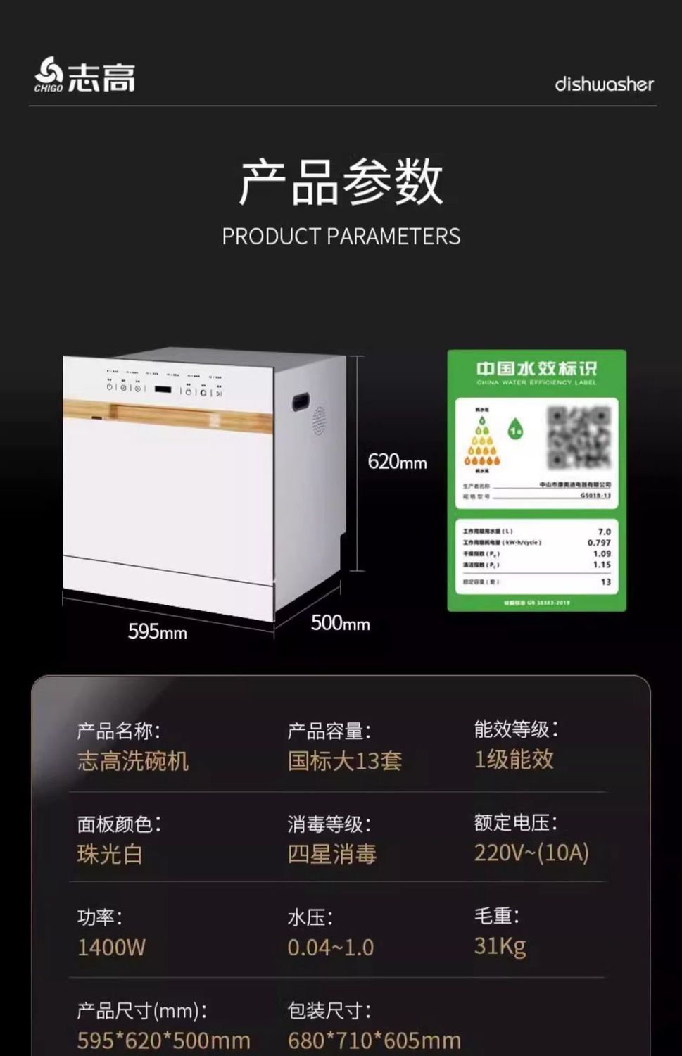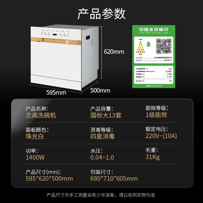 志高洗碗机13套升级嵌入式白色家用四星消毒自动热风烘干一级水效