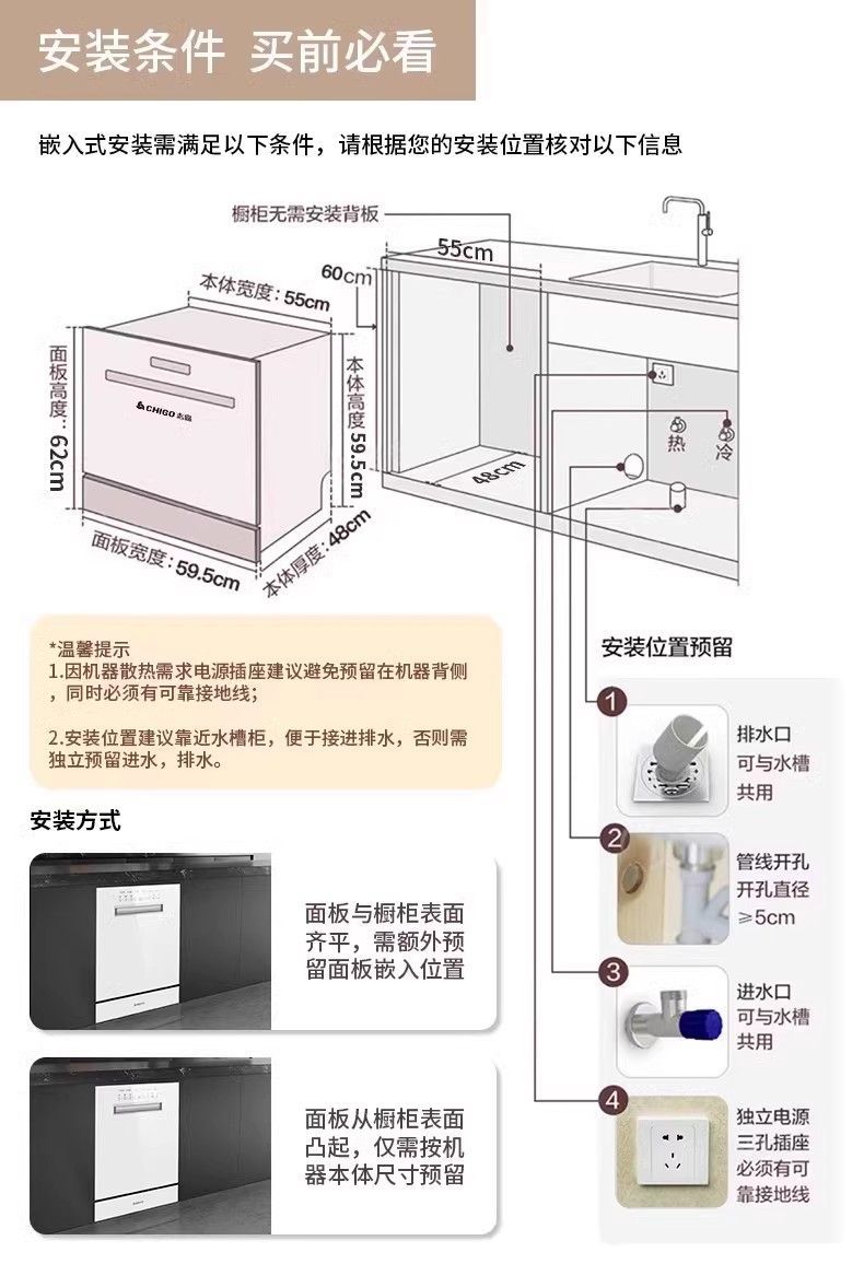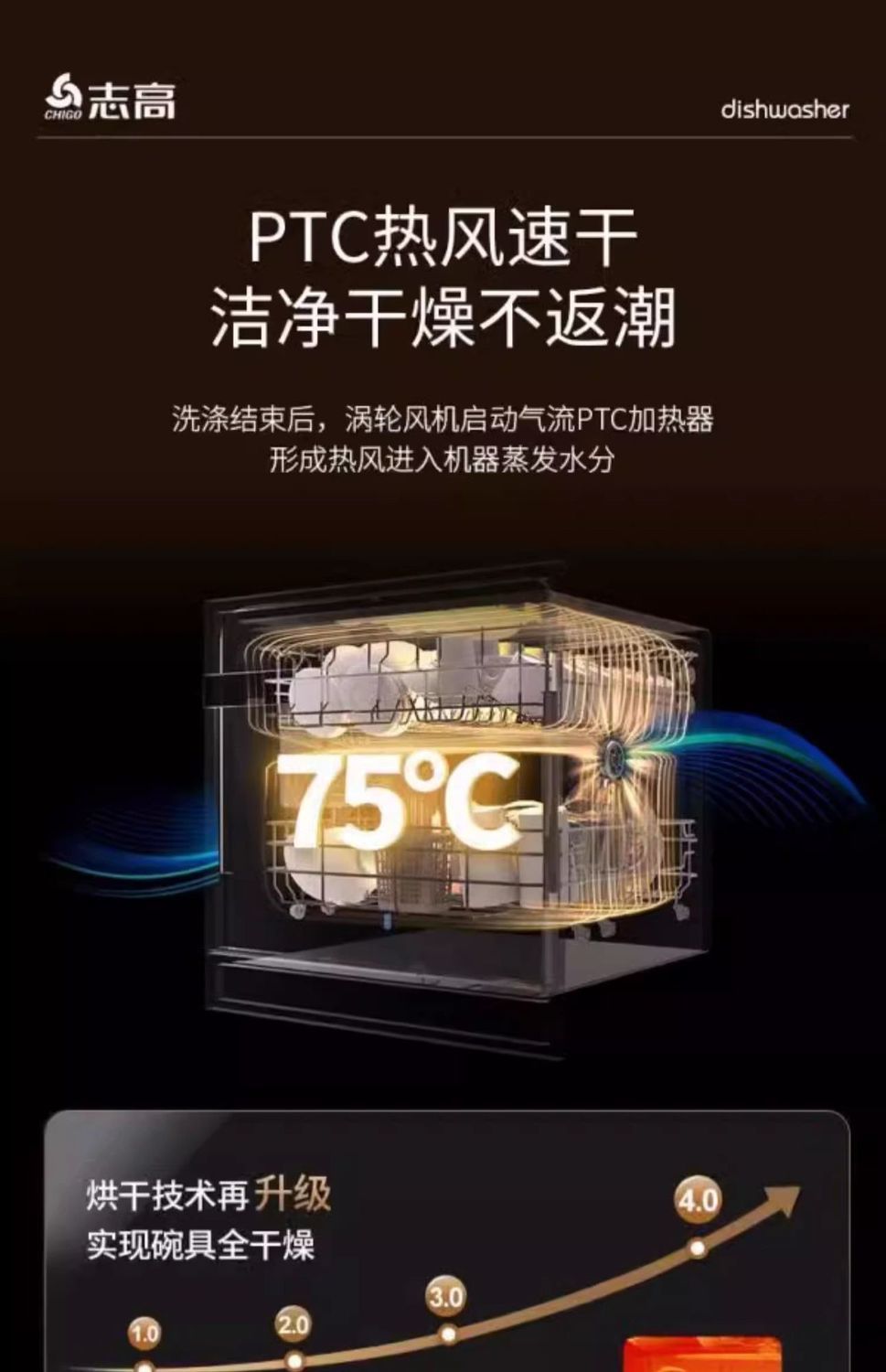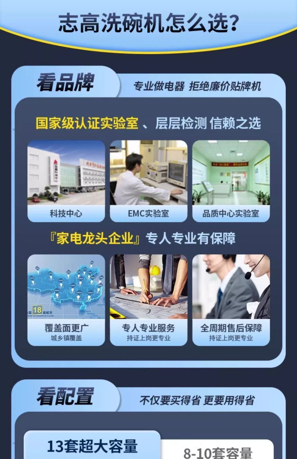 志高洗碗机13套升级嵌入式白色家用四星消毒自动热风烘干一级水效
