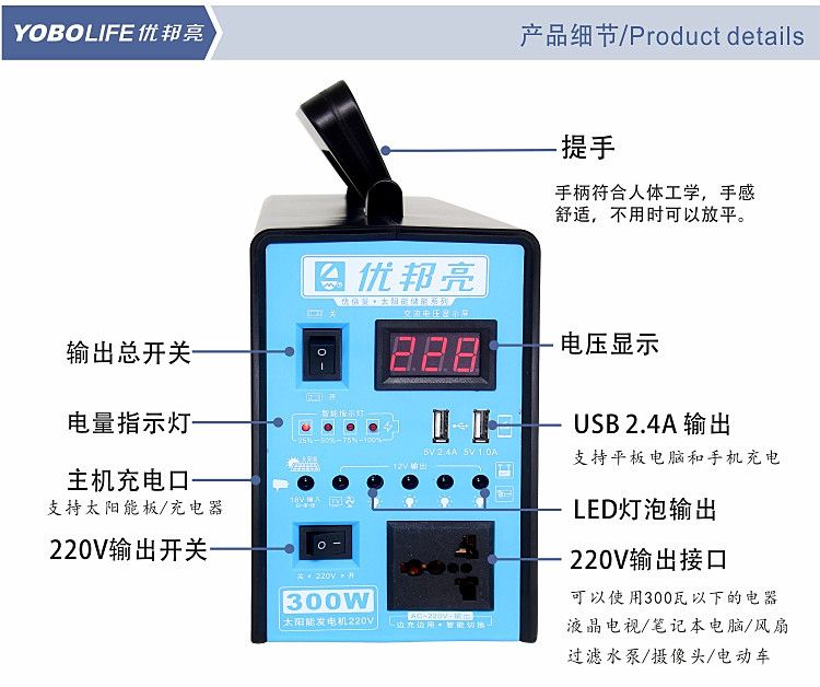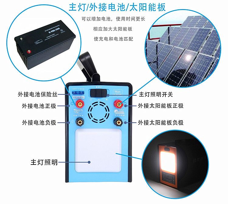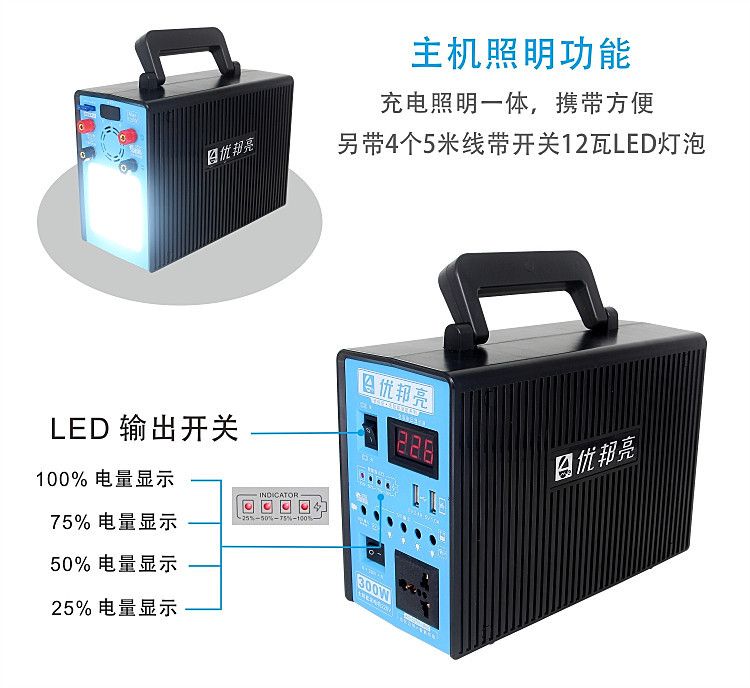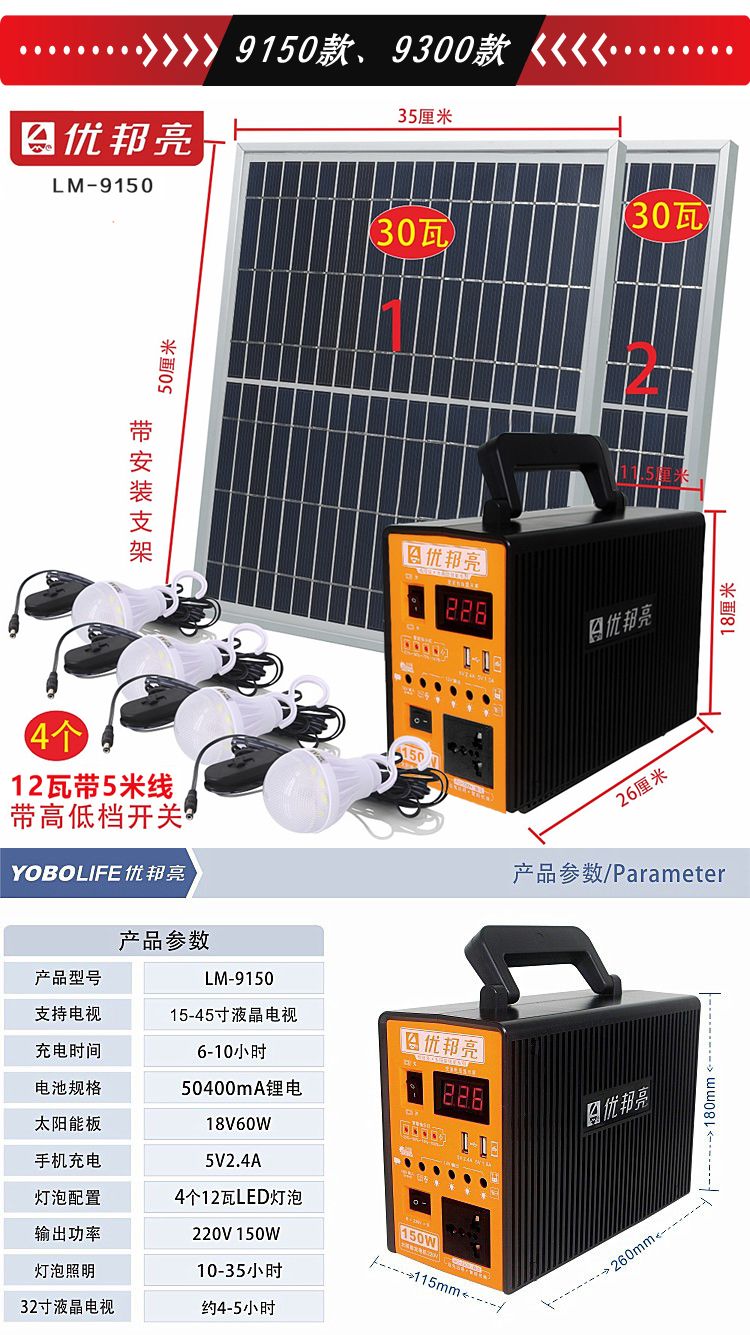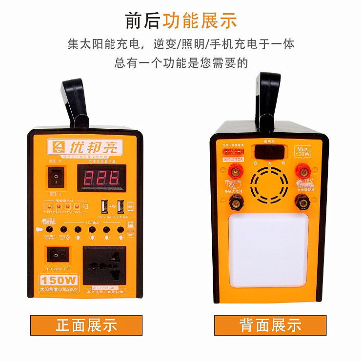 太阳能发电系统220V家用超亮照明灯直播户外发电设备蓄电池光伏板