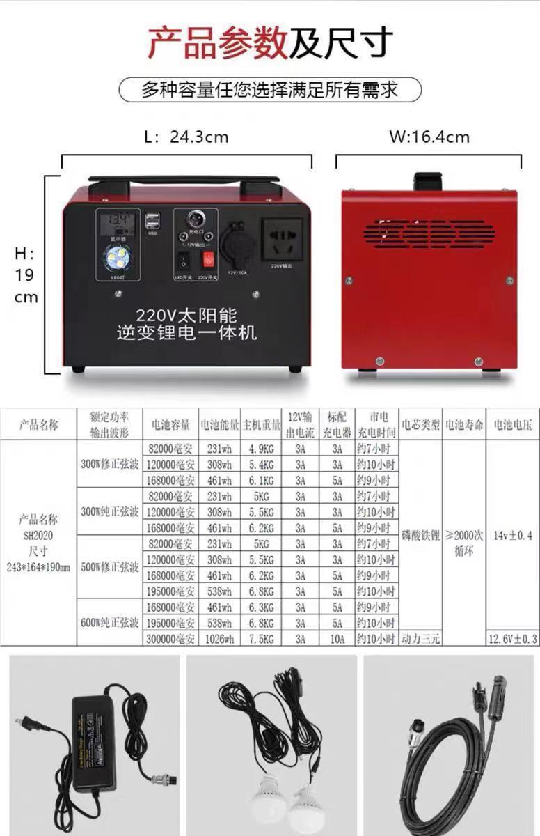 太阳能发电机系统家用220v全套户外光伏板应急小型便携供电一体机