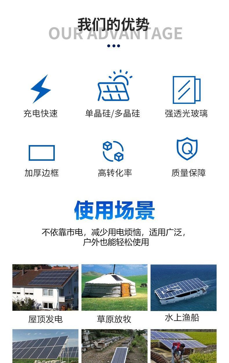 厂家直销全新太阳能充电板单晶通用型发电房车船12v 多功能单双玻