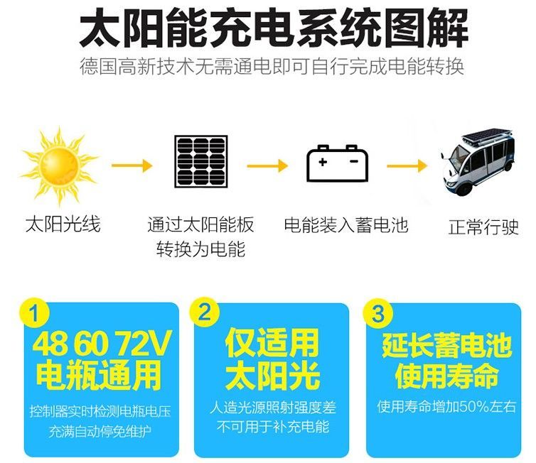 太阳能发电板48V60伏72V电动三轮电瓶车车载老年代步车电池充电板