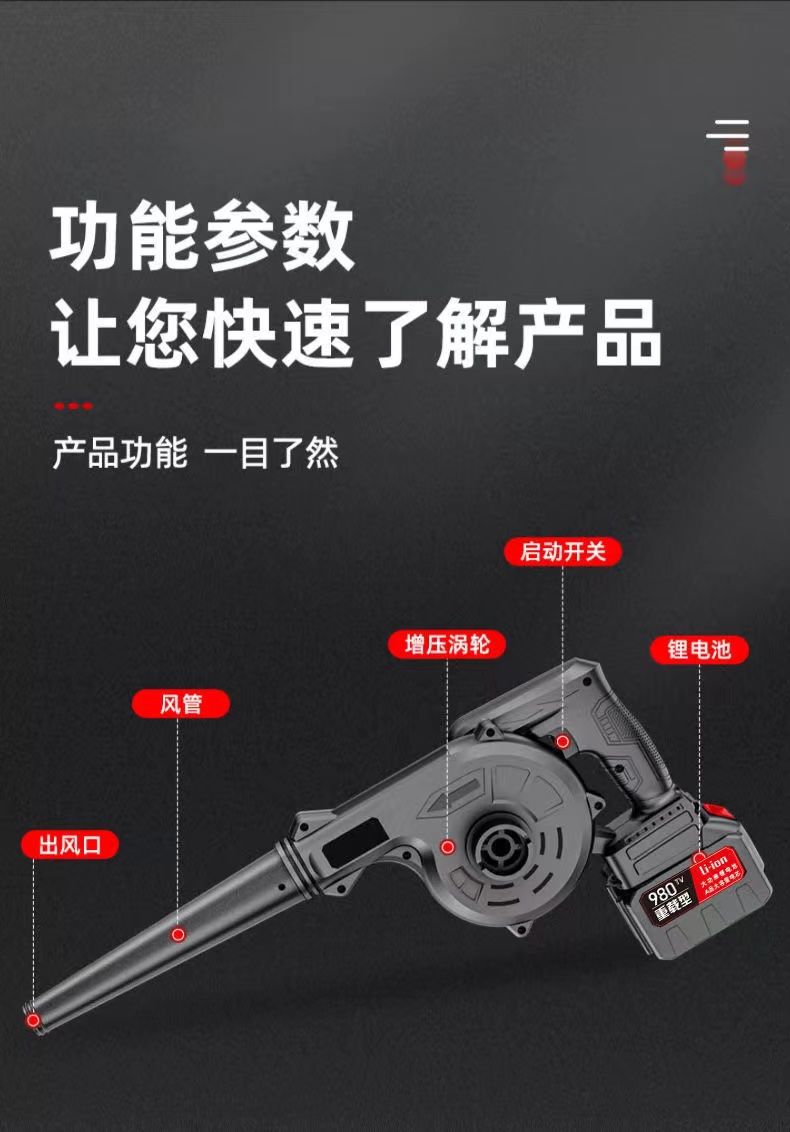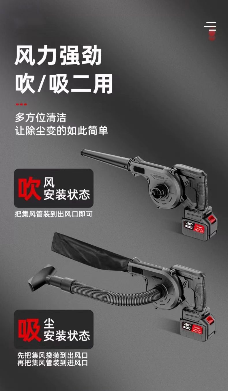 德国大功率工业锂电鼓风机充电式吹风机强劲车载吹灰机家用除尘器