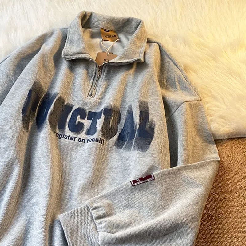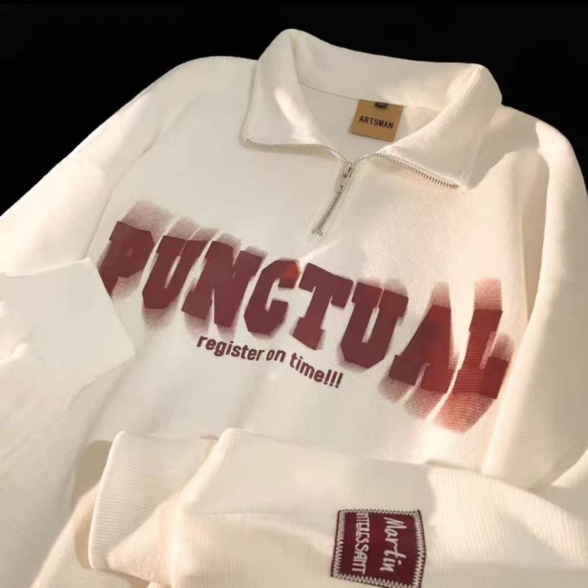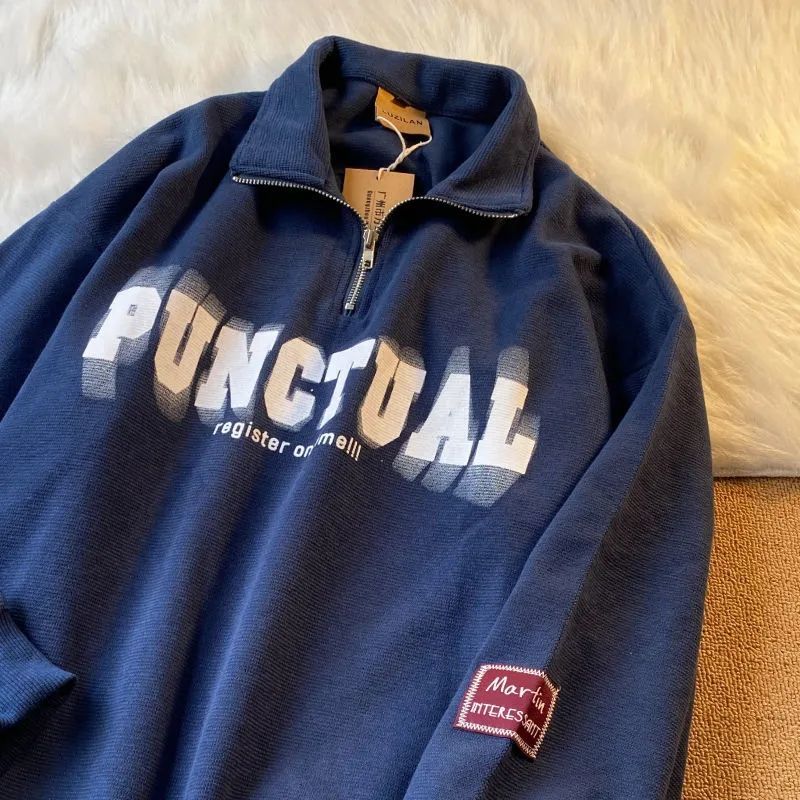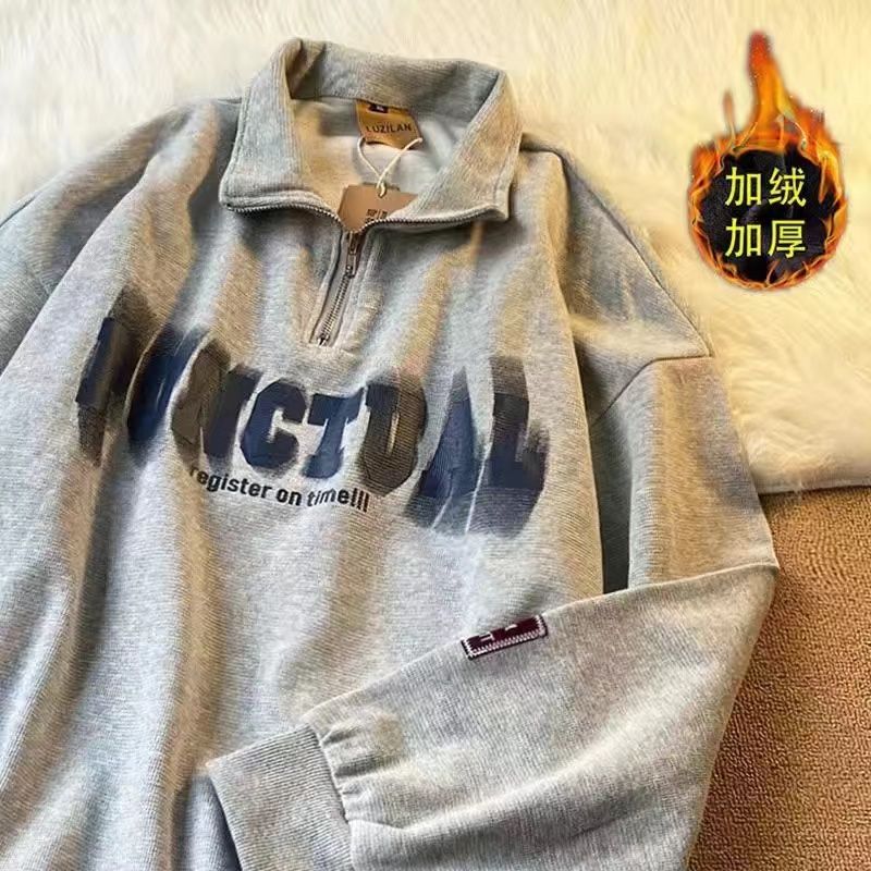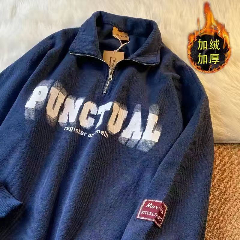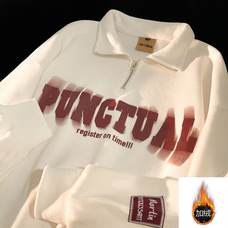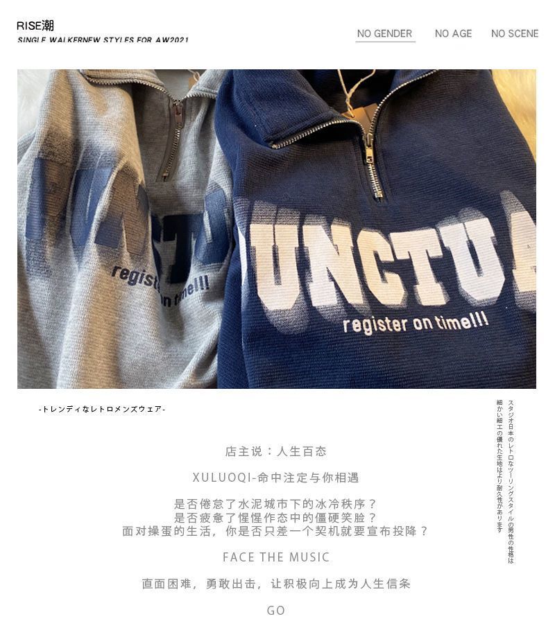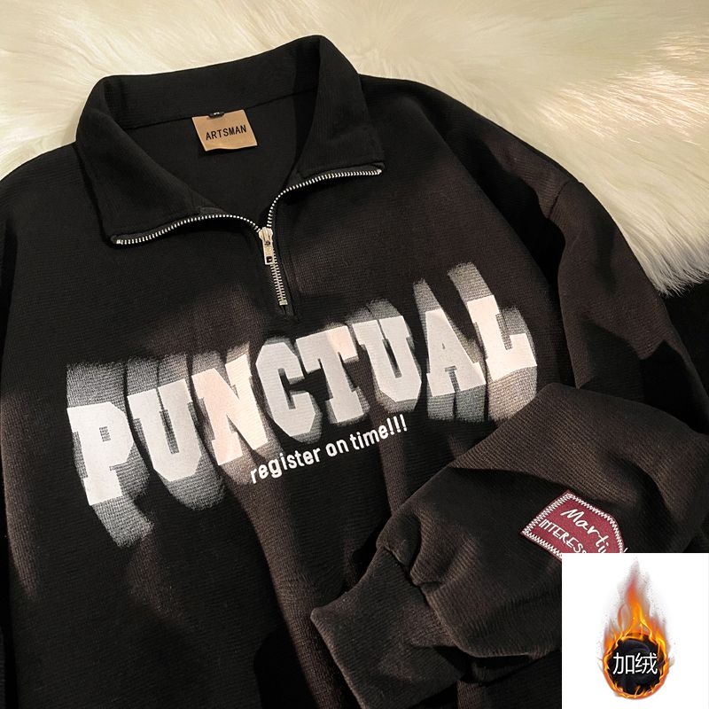 hiphop潮牌ins卫衣男无帽春秋美式cityboy日系个性半拉链POLO衫领
