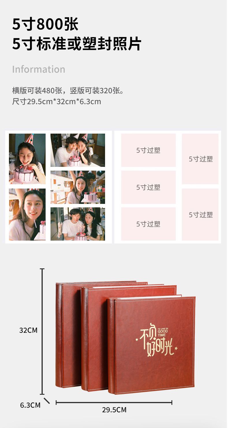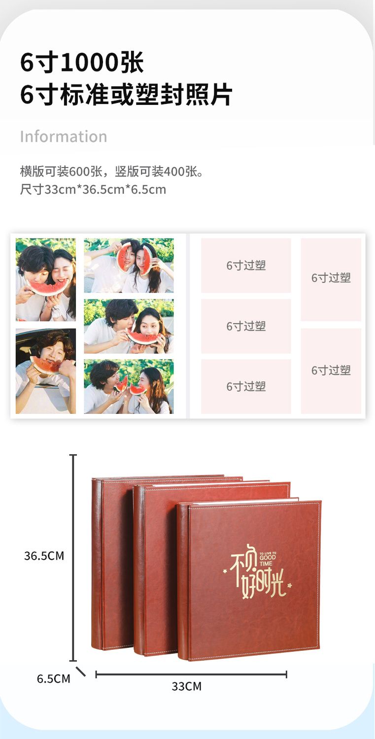 6寸1000张情侣相册本大容量家庭影集纪念册插页式照片收纳皮质5寸