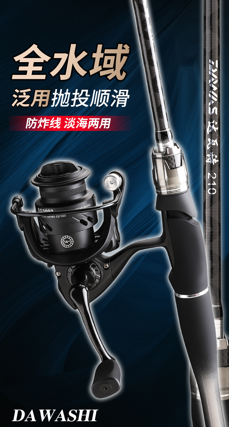 日本达瓦进口路亚竿全套远投水滴轮抛竿新套装打黑泛用海杆钓鱼竿