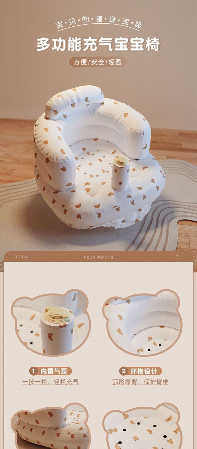 宝宝婴儿学座椅充气浴凳小孩神器家用防摔训练户外儿童沙发坐椅