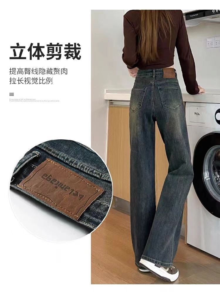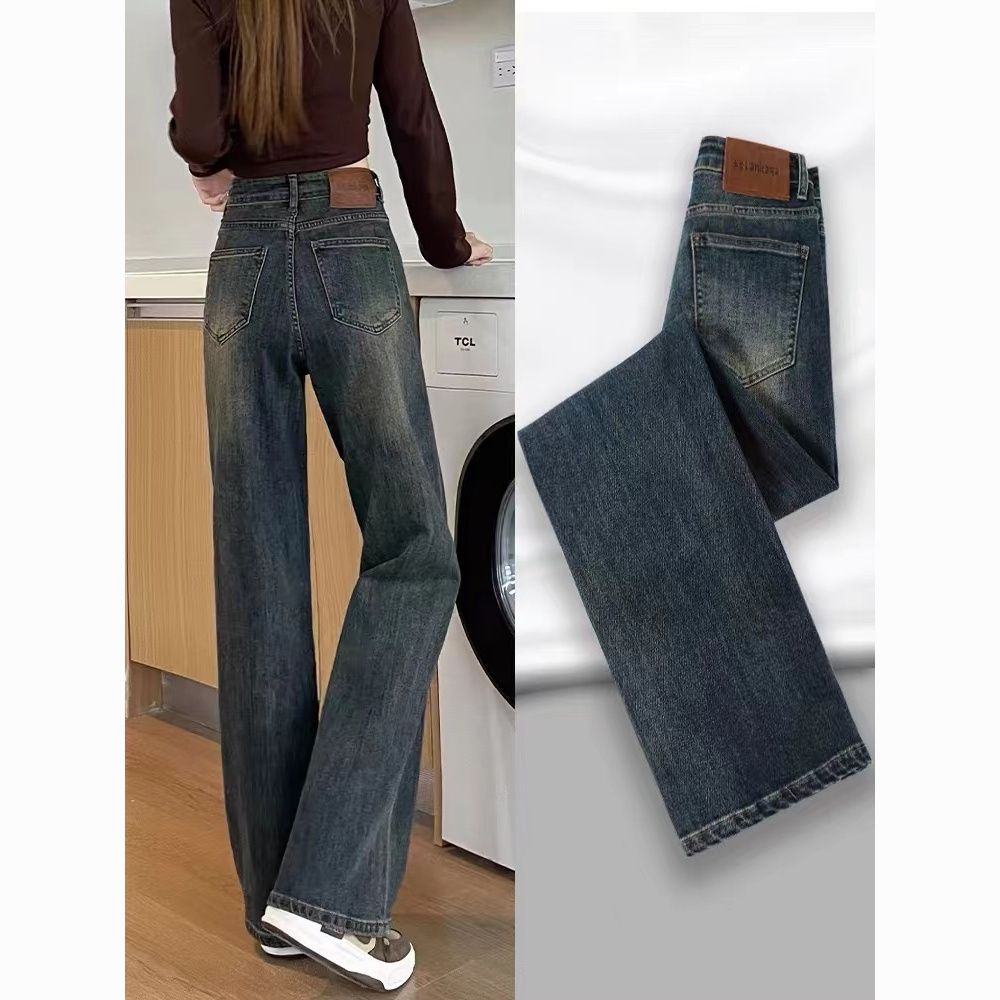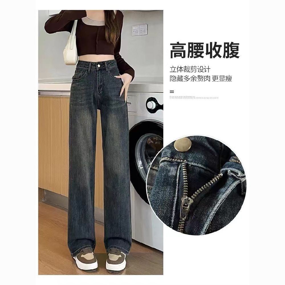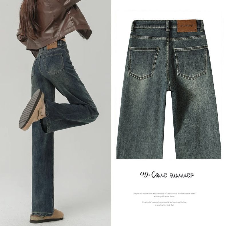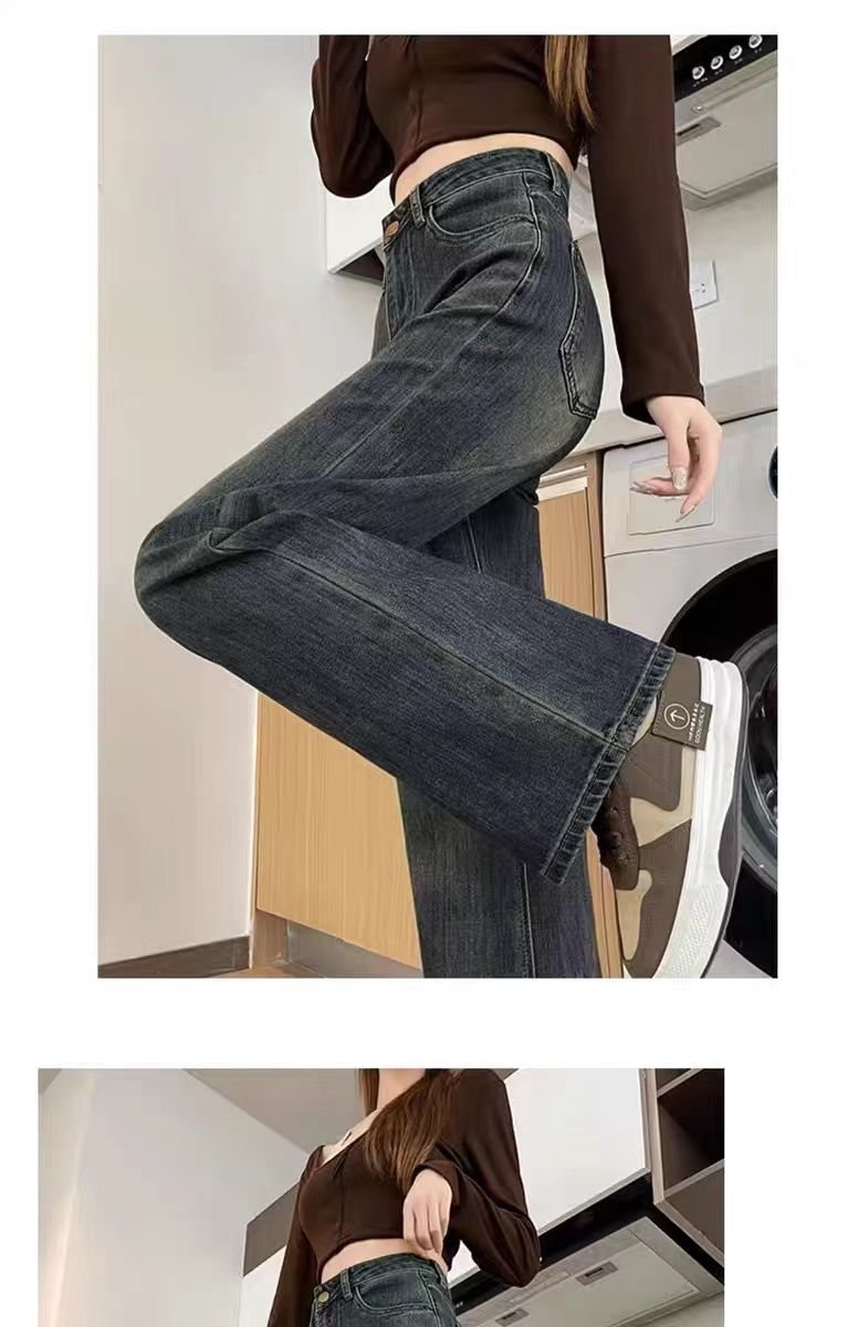高腰直筒加绒牛仔裤女士裤子秋冬季阔腿裤百搭垂坠感显高显瘦加厚