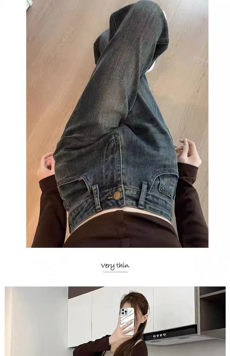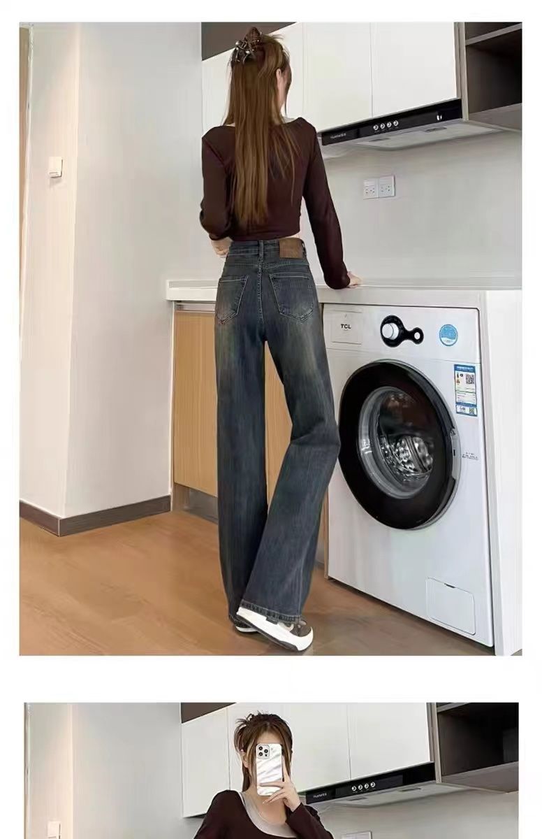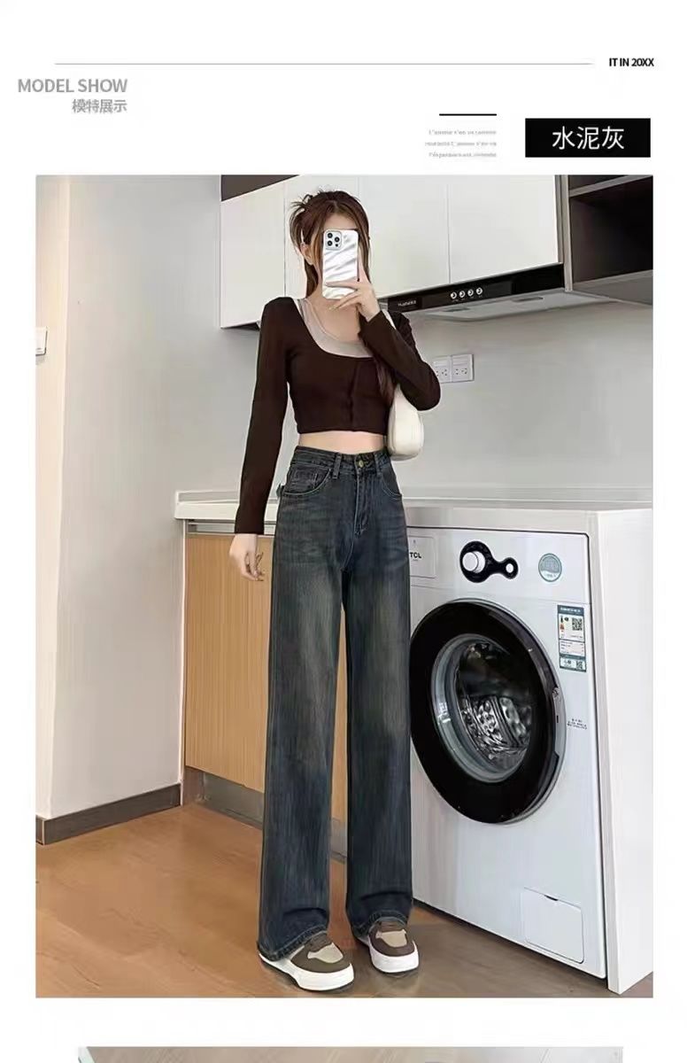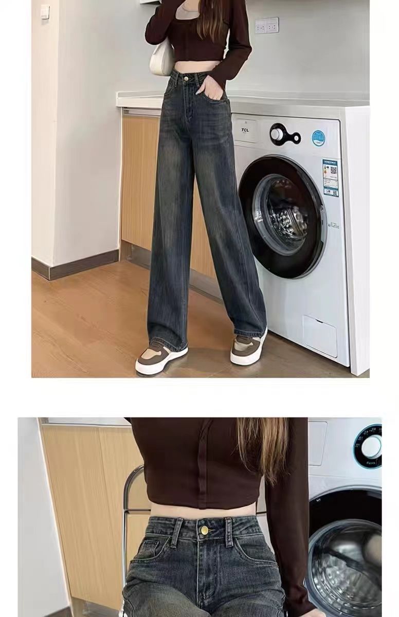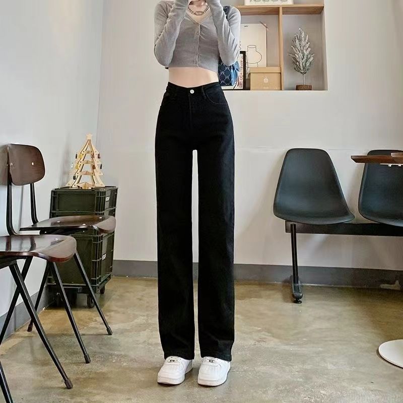 高腰直筒加绒牛仔裤女士裤子秋冬季阔腿裤百搭垂坠感显高显瘦加厚