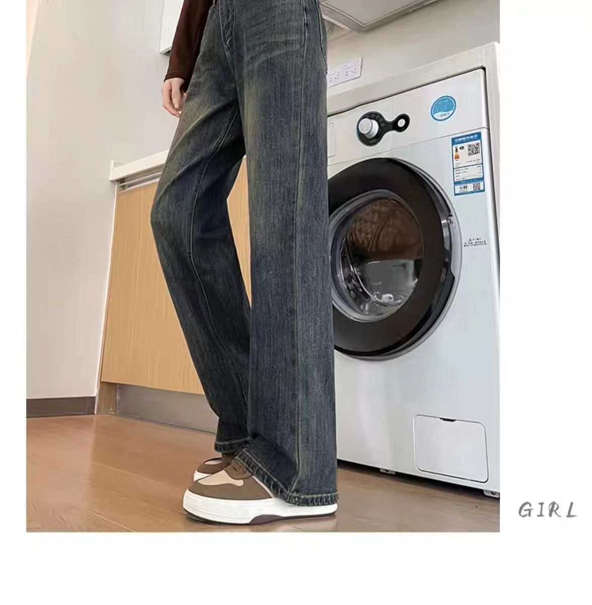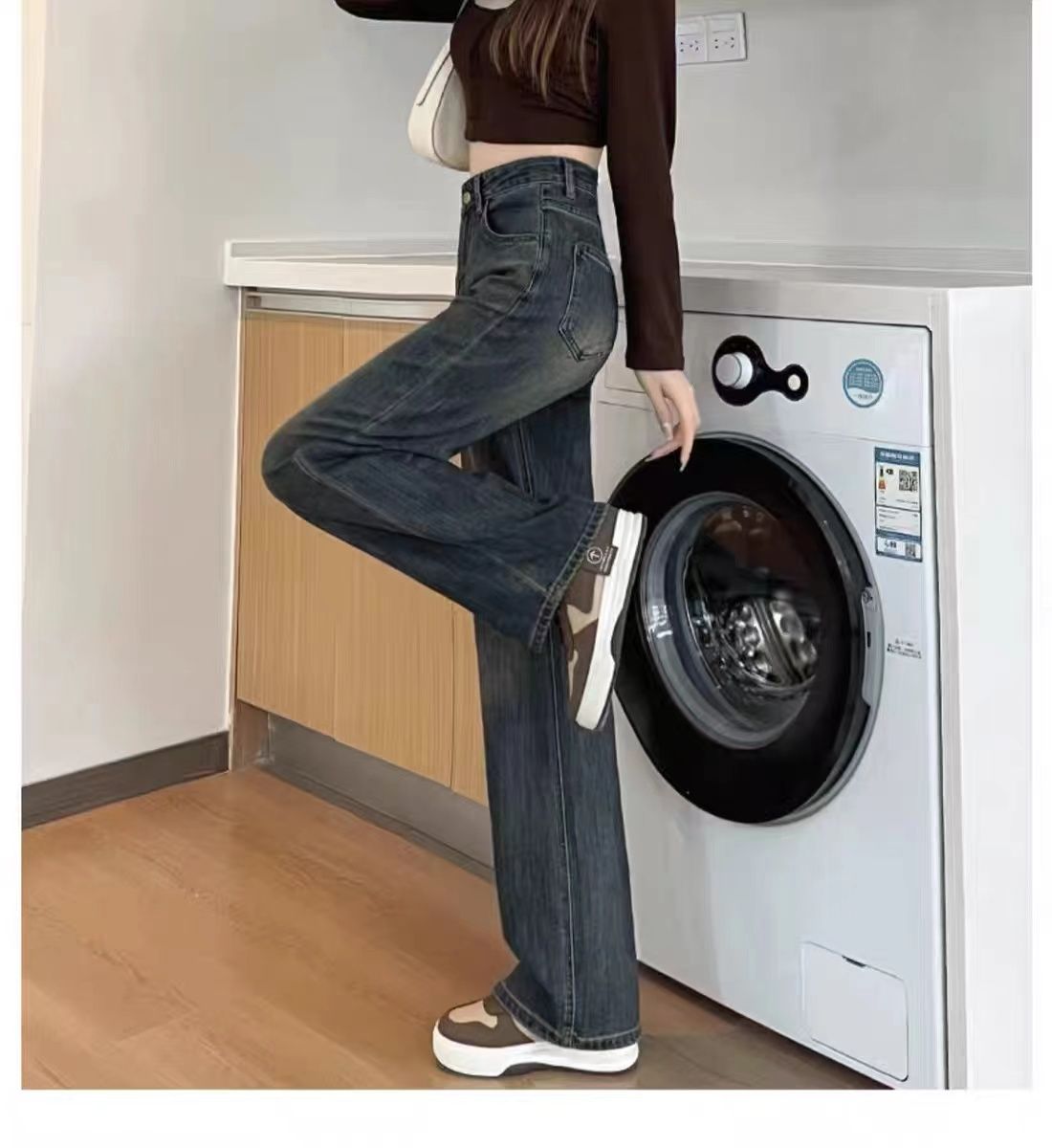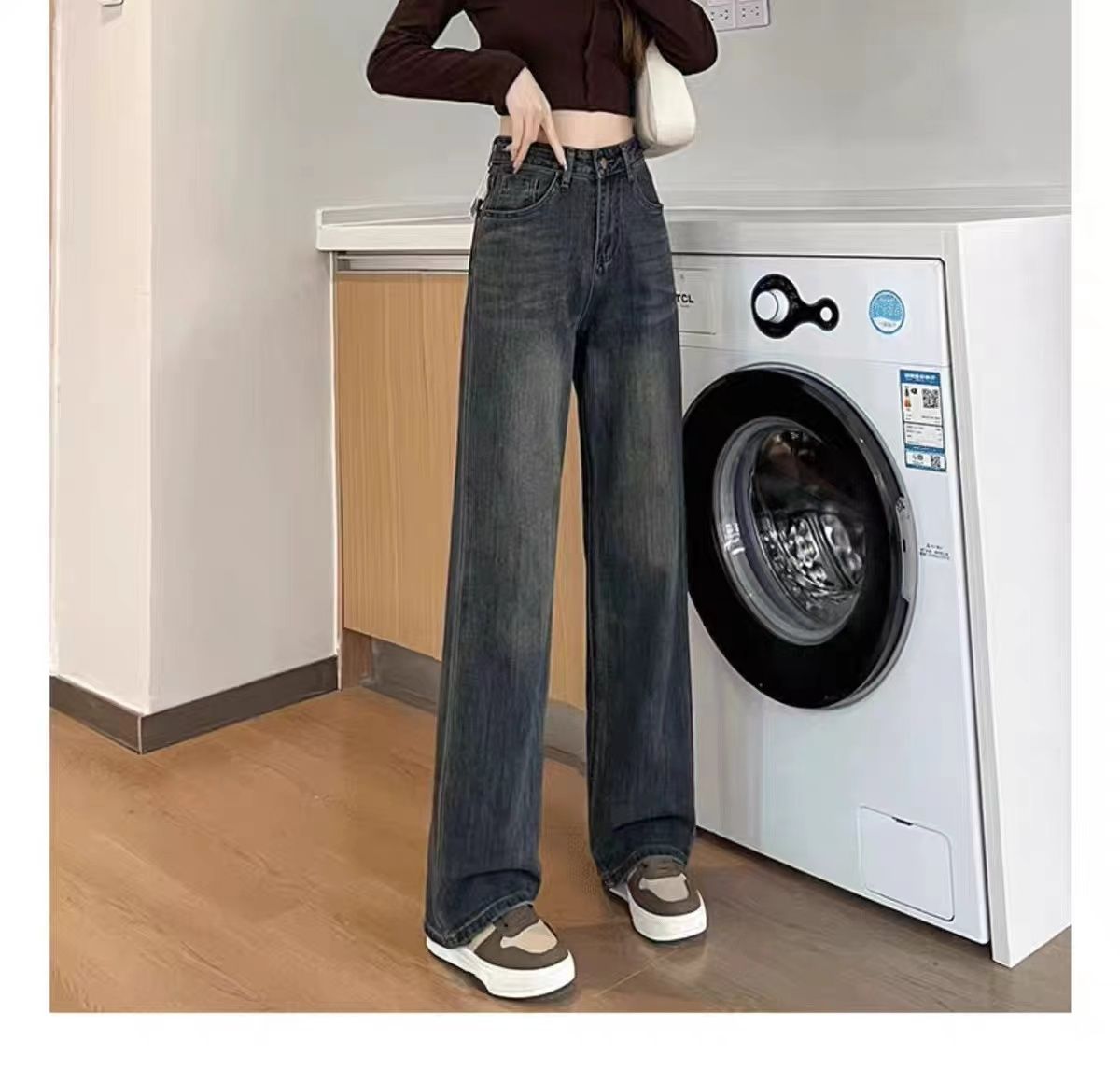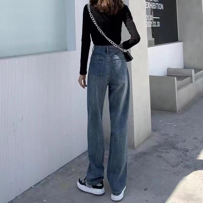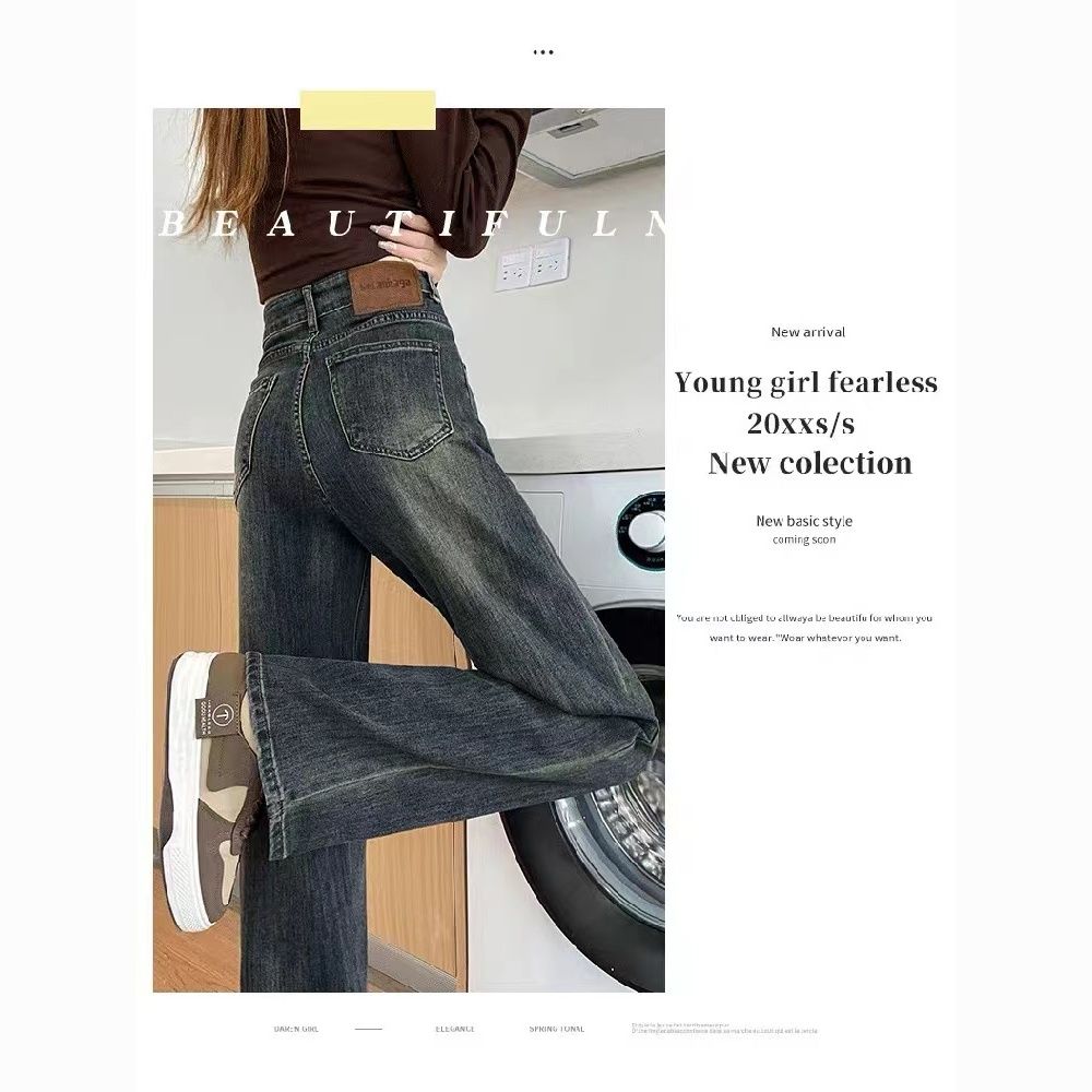 高腰直筒加绒牛仔裤女士裤子秋冬季阔腿裤百搭垂坠感显高显瘦加厚