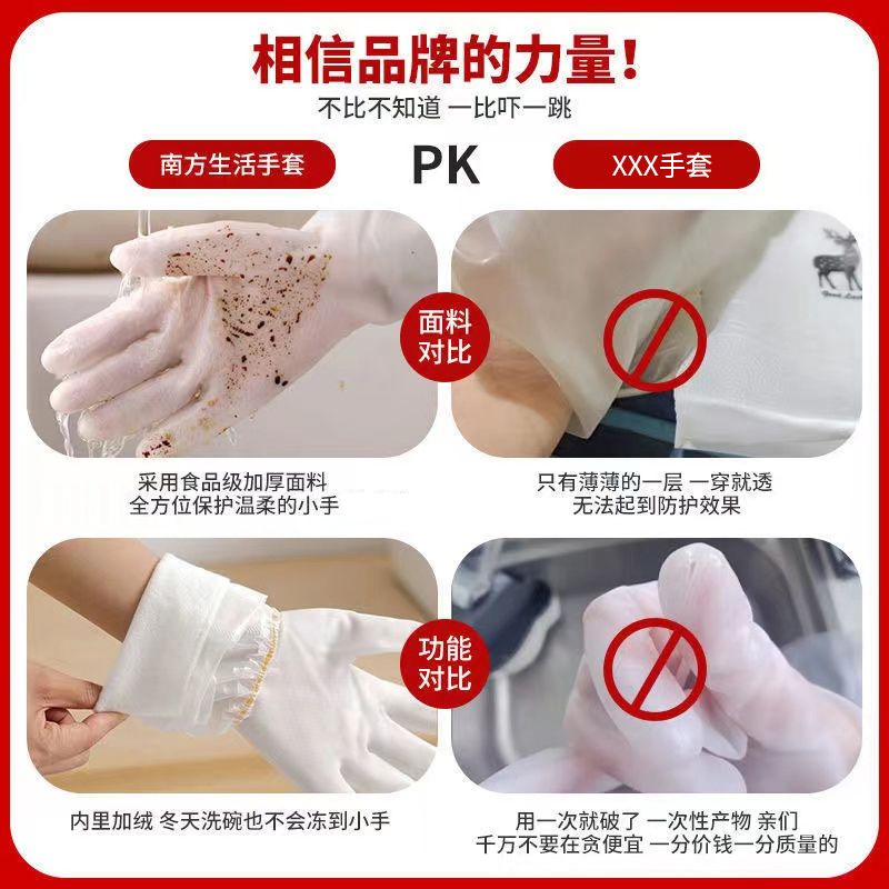 家务手套洗碗厨房女耐用清洁家用干活洗衣服橡胶防水贴手劳保牛筋