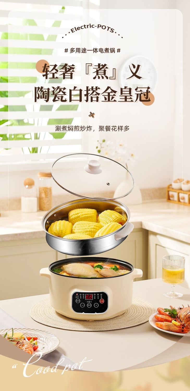 | 24cm electric steaming and boiling pot with 1 steamer [natural black porcelain] non-stick(24CM电蒸煮锅 配1个蒸屉【天然黑瓷】不粘) | USD $18.33 | 99999 piece available |