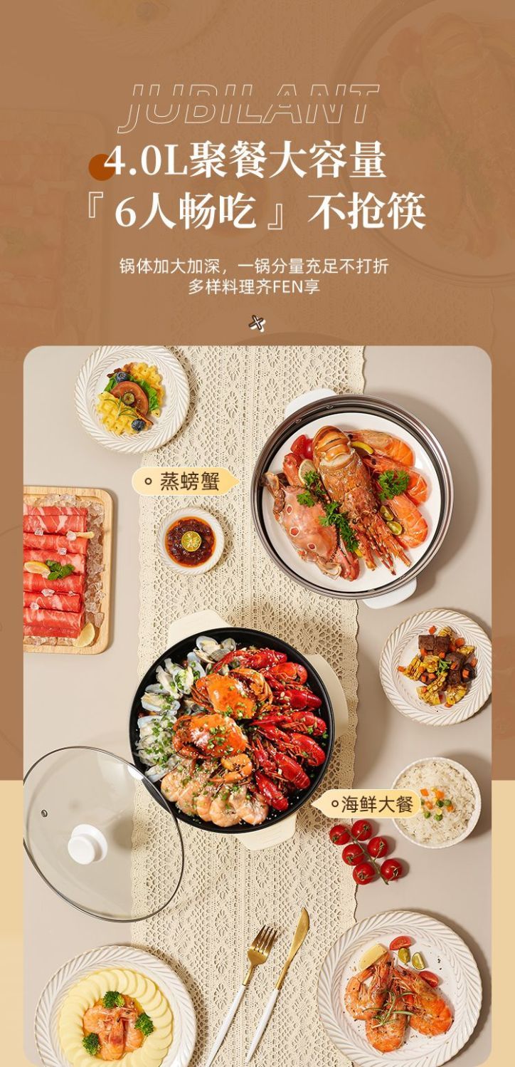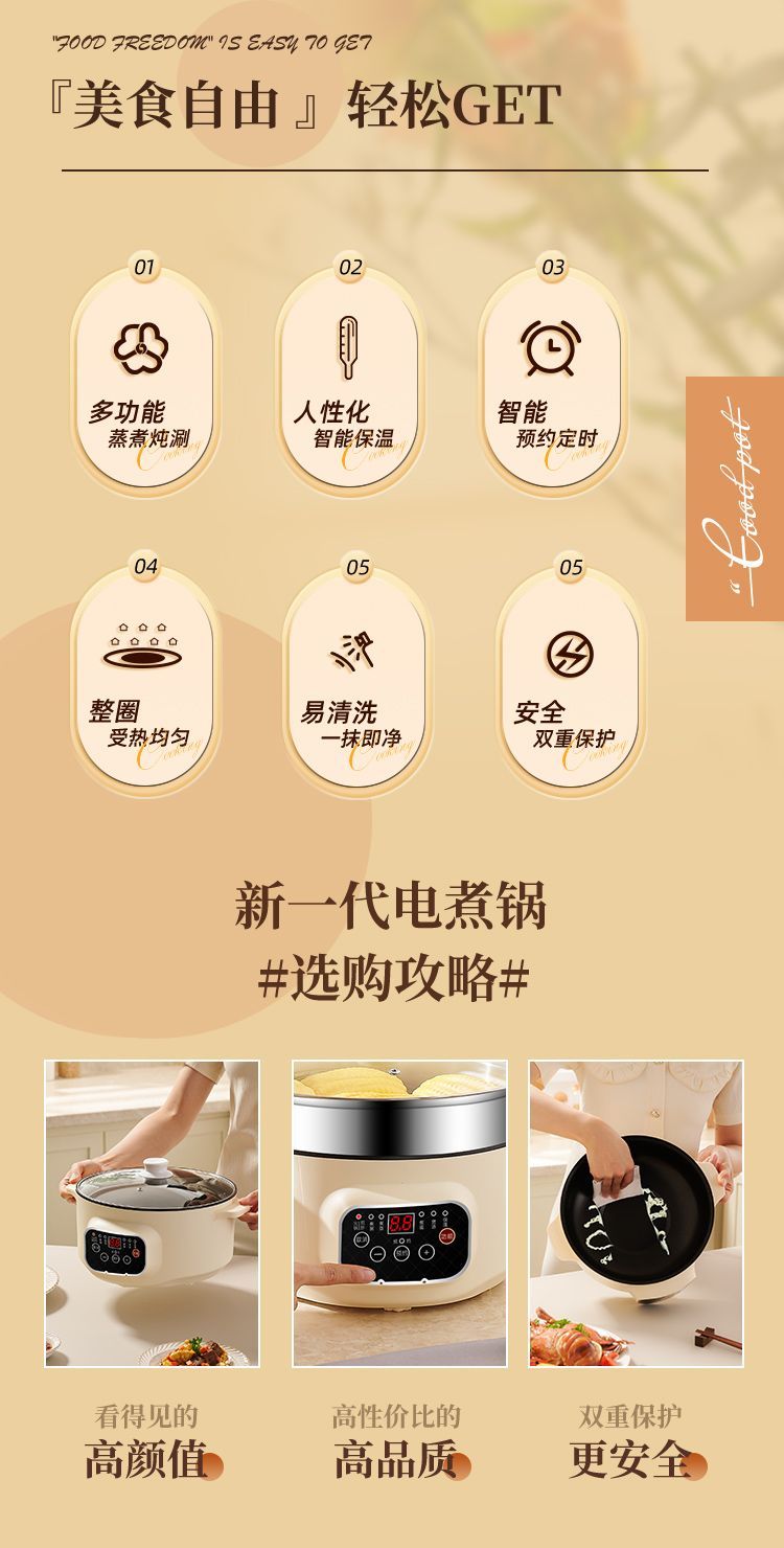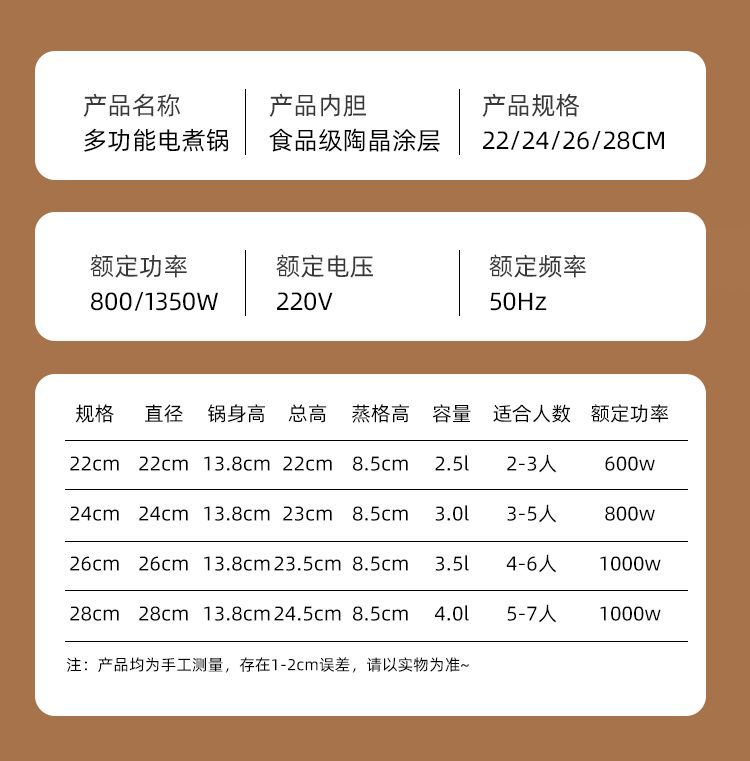 | 28cm electric steaming and boiling pot with 1 steamer [natural black porcelain] non-stick(28CM电蒸煮锅 配1个蒸屉【天然黑瓷】不粘) | USD $20.2 | 99999 piece available |