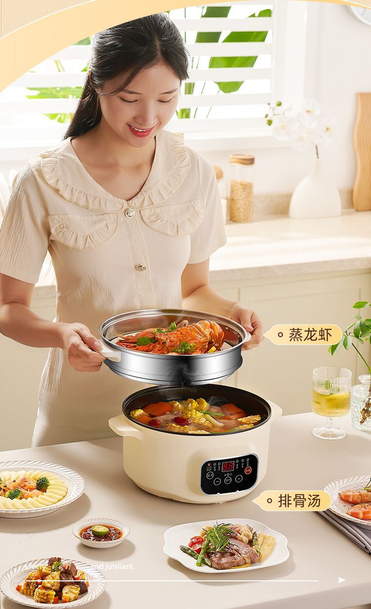 电蒸笼预约定时多层蒸馒头智能蒸煮锅电蒸锅多功能家用大容量三层