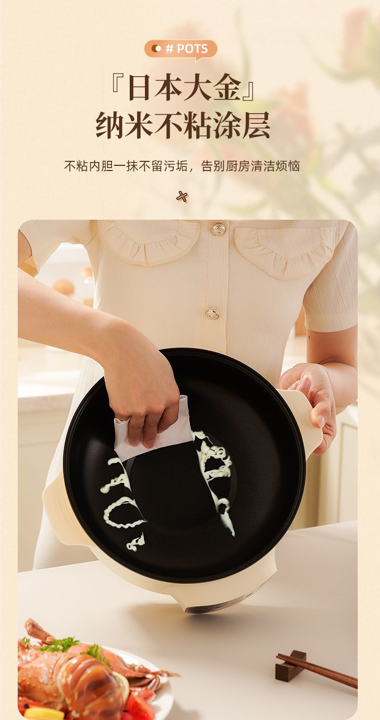 | 22cm electric steaming and boiling pot with 1 steamer [natural black porcelain] non-stick(22CM电蒸煮锅 配1个蒸屉【天然黑瓷】不粘) | USD $15.52 | 99999 piece available |