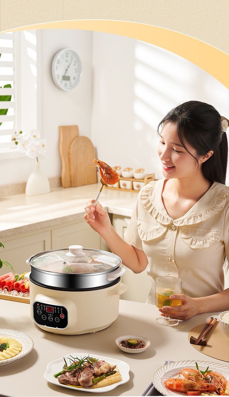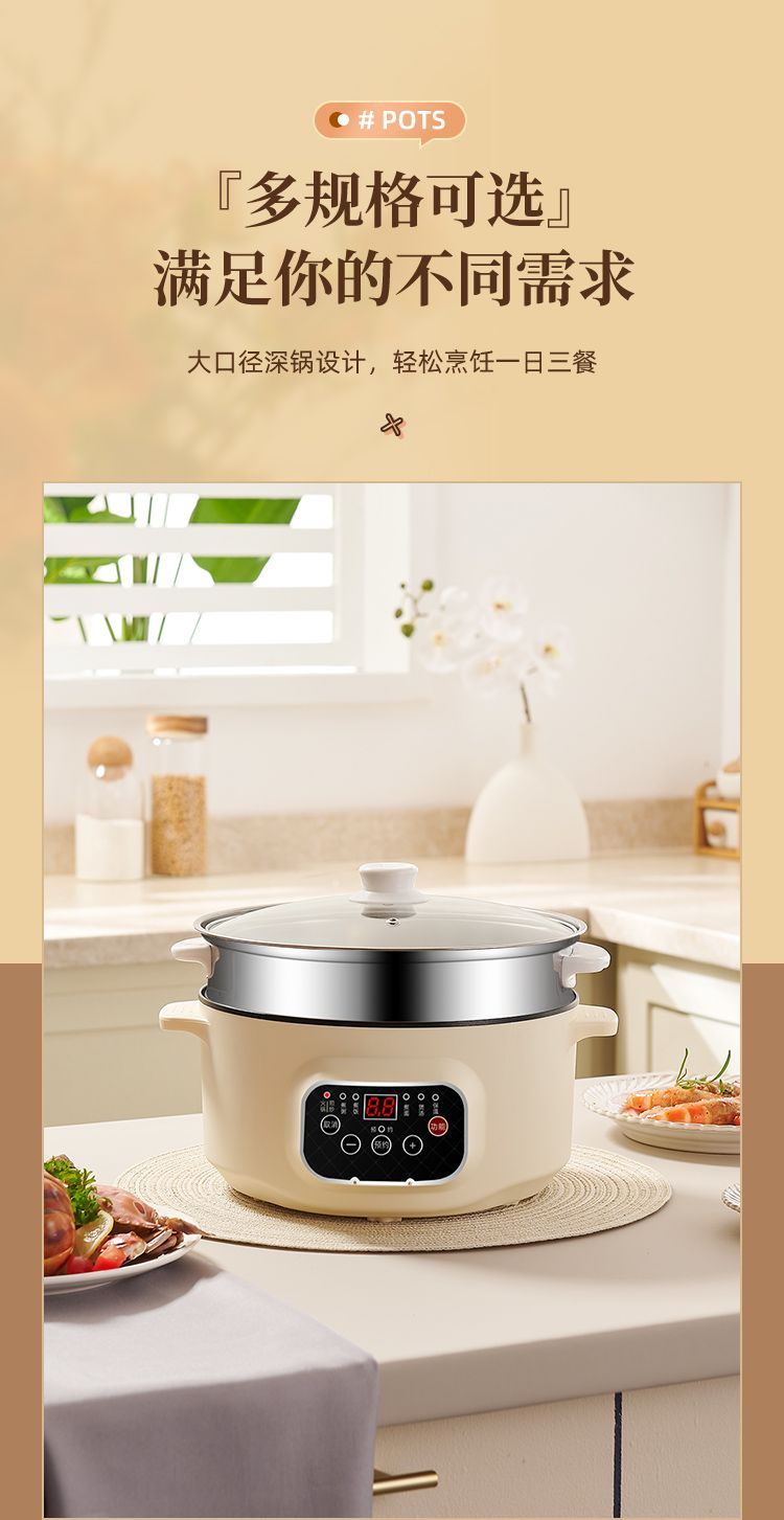 | 26cm electric steaming and boiling pot with 3 steamer [natural black porcelain] non-stick(26CM电蒸煮锅 配3个蒸屉【天然黑瓷】不粘) | USD $23.0 | 99999 piece available |