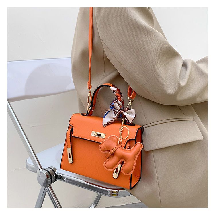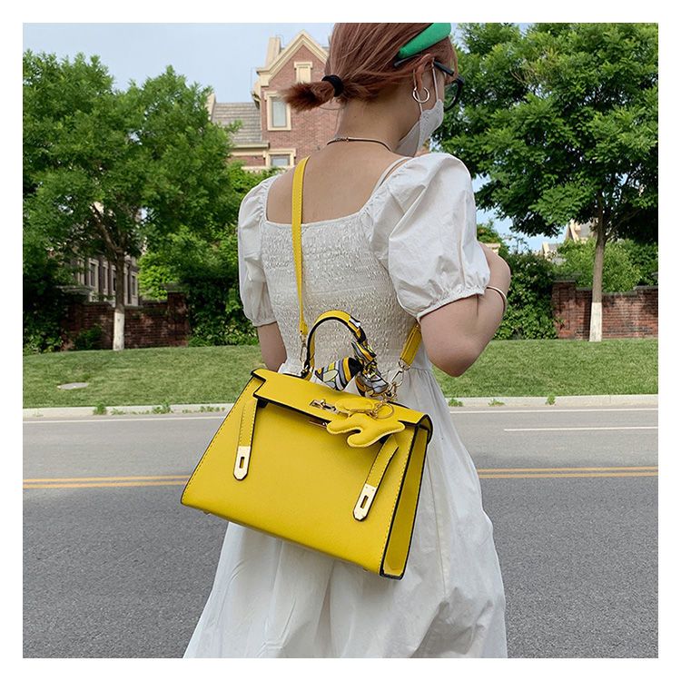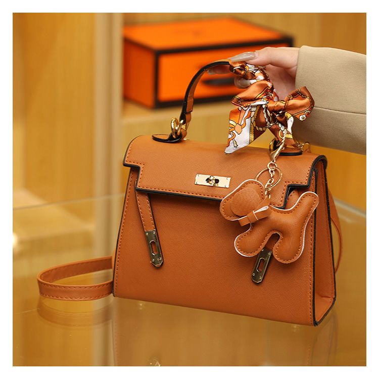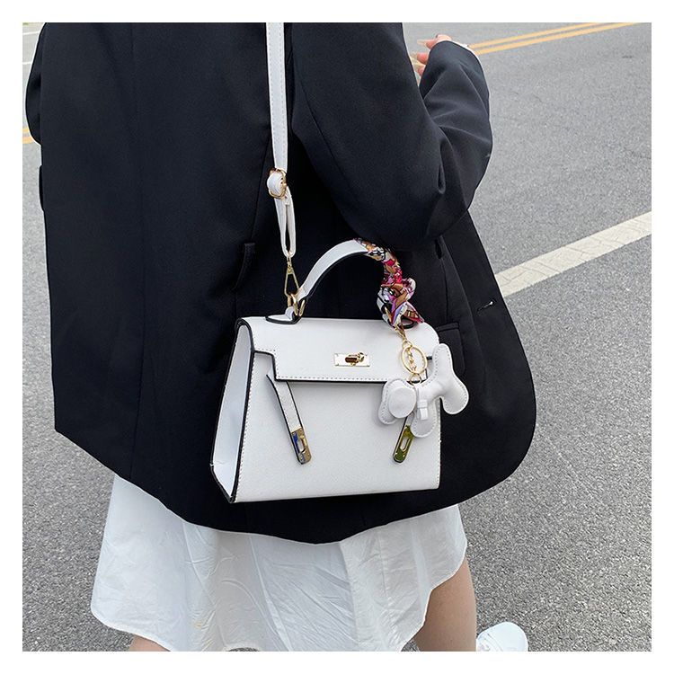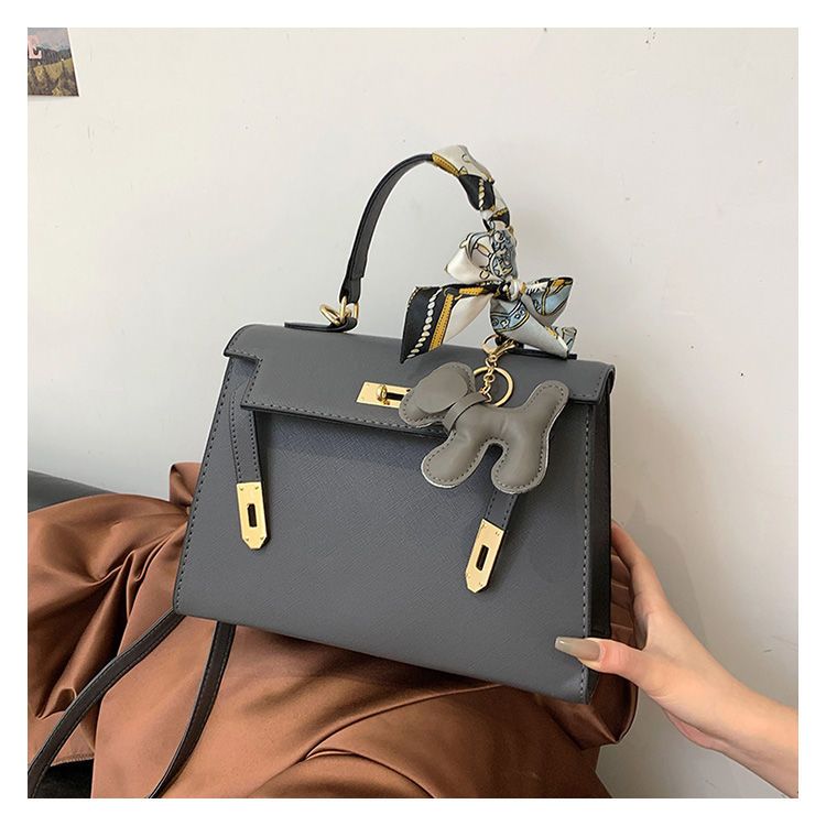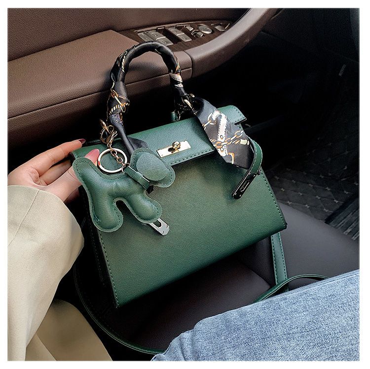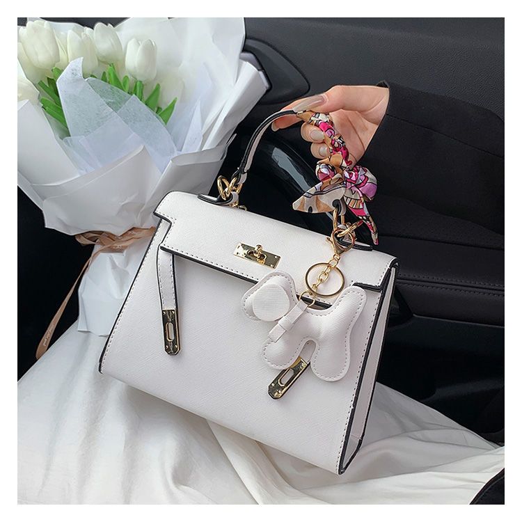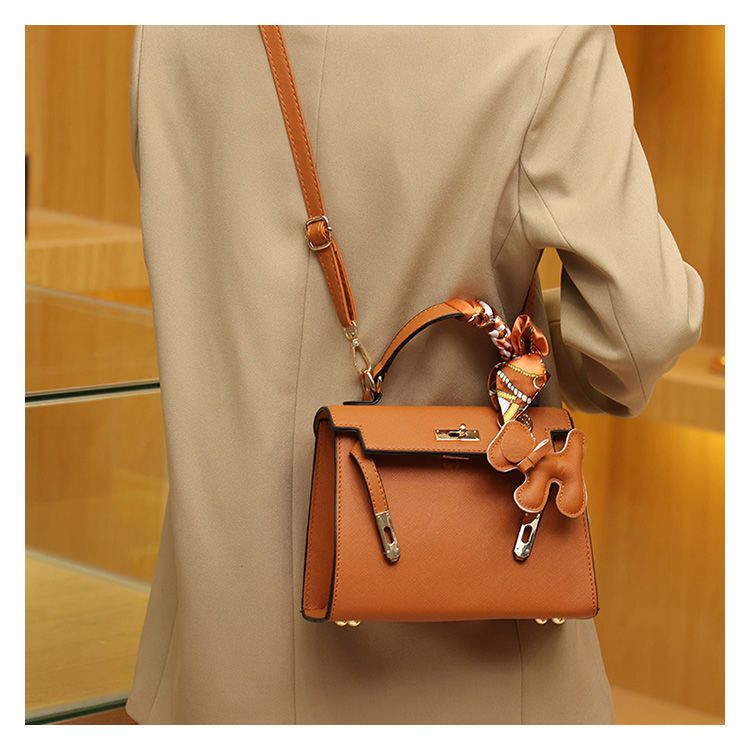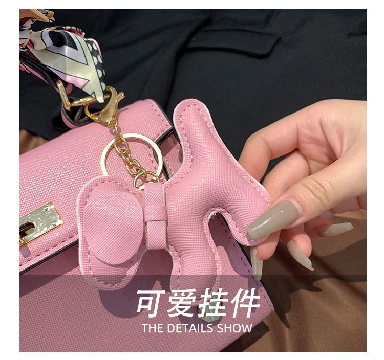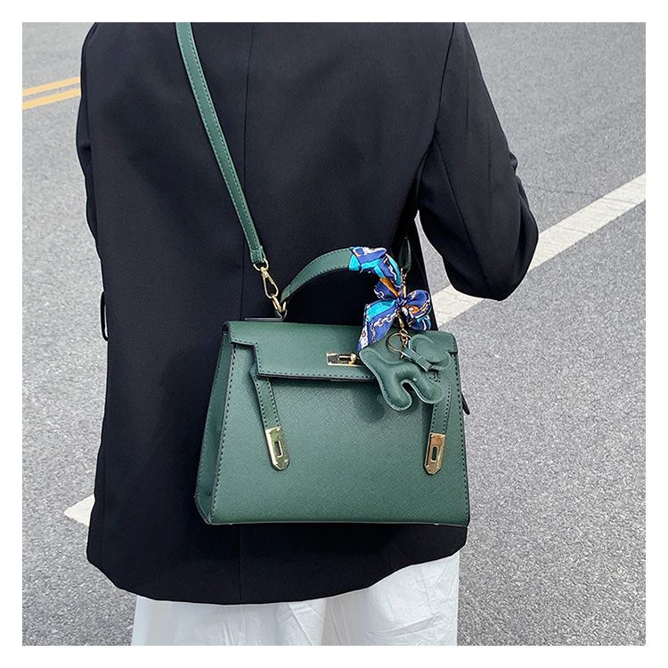 新款百搭大容量气质凯莉单肩包红色手提婚包丝巾小狗挂件斜挎小包