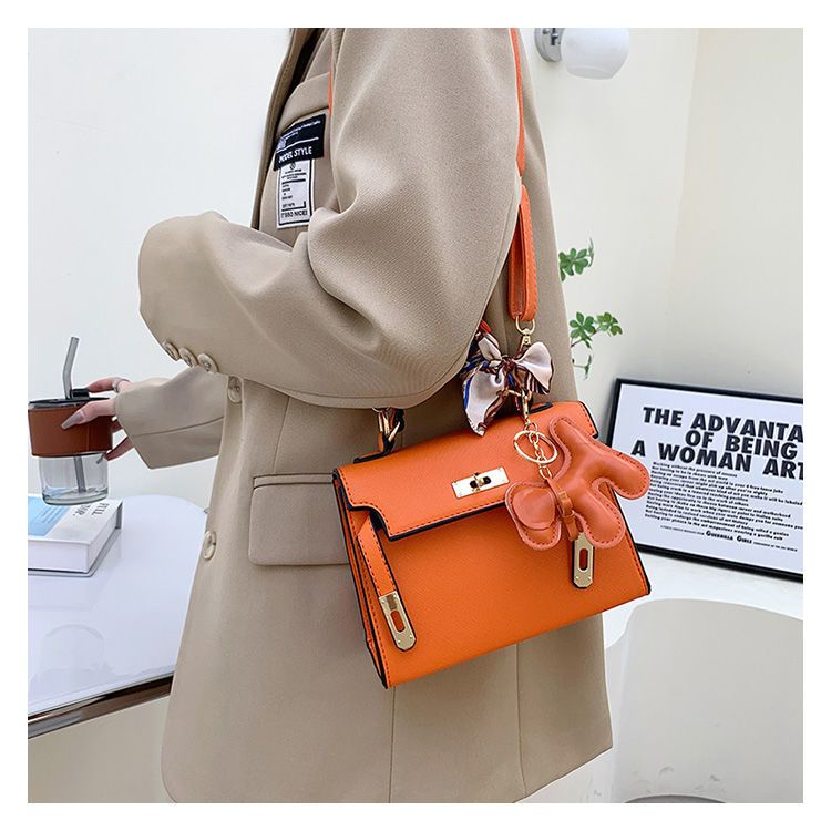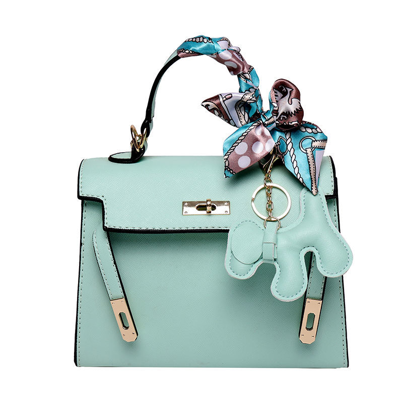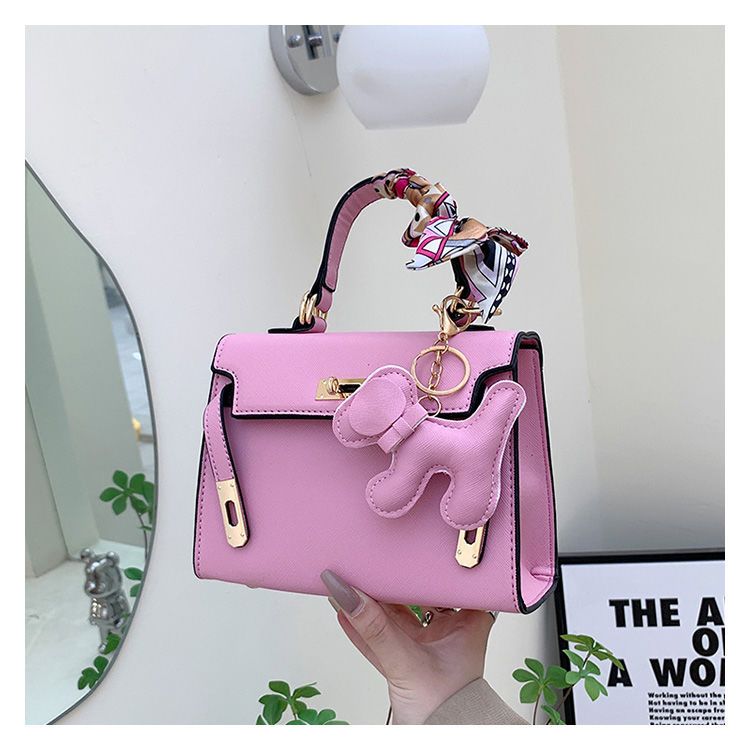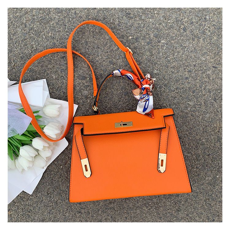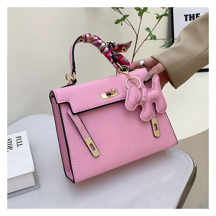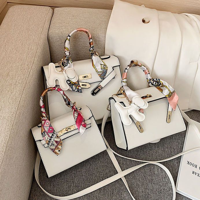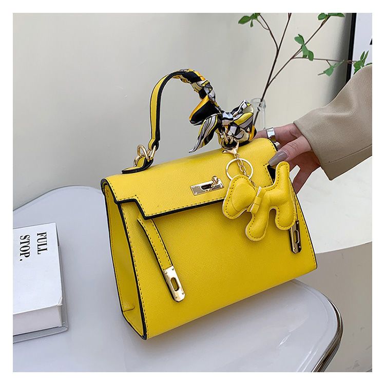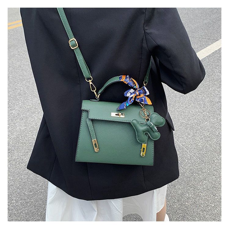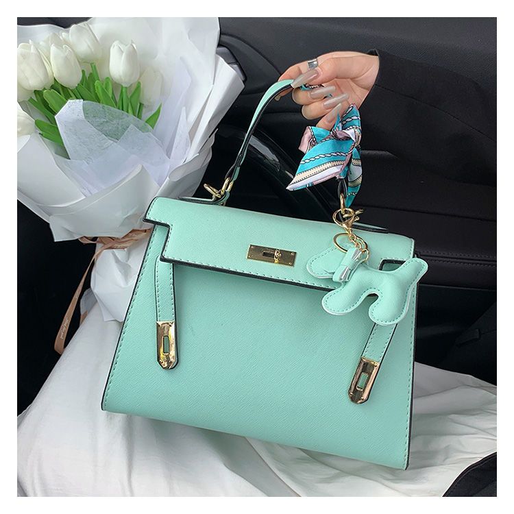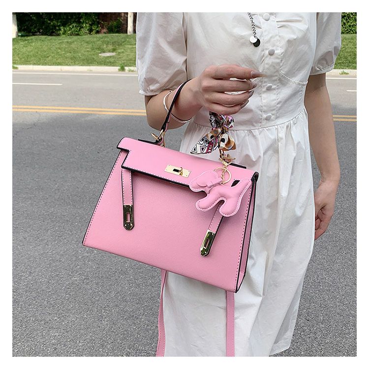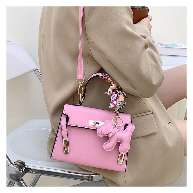 新款百搭大容量气质凯莉单肩包红色手提婚包丝巾小狗挂件斜挎小包