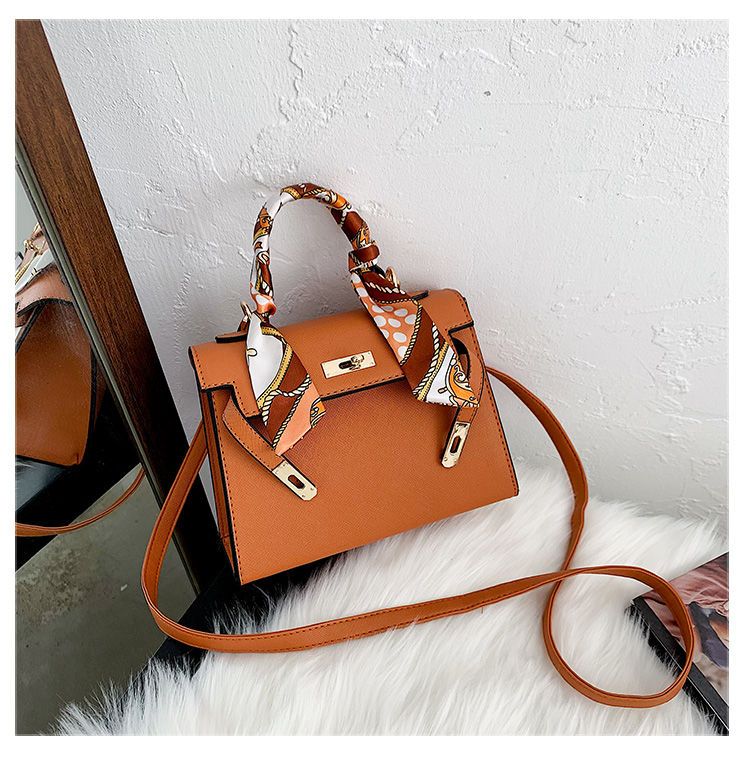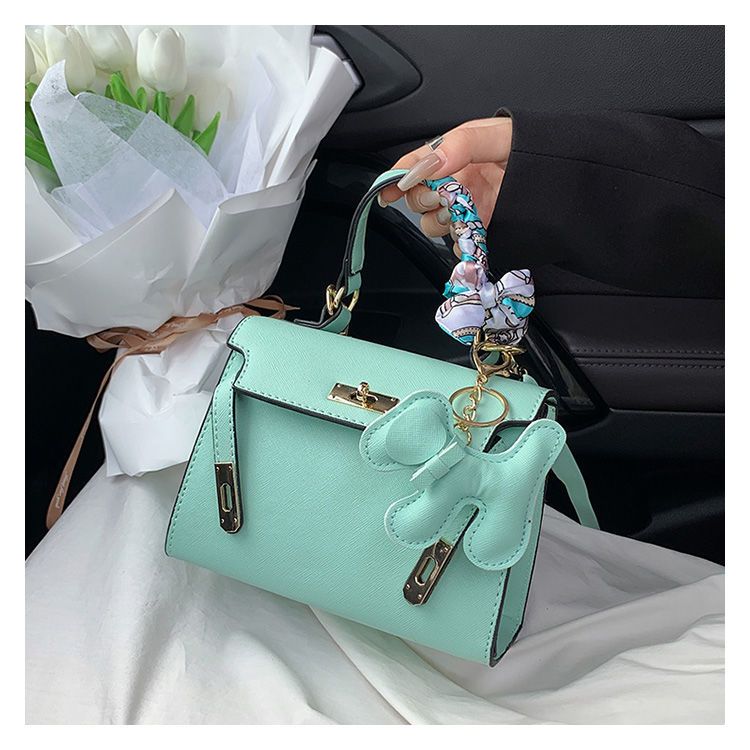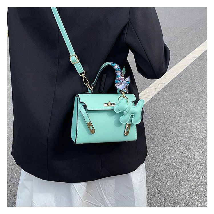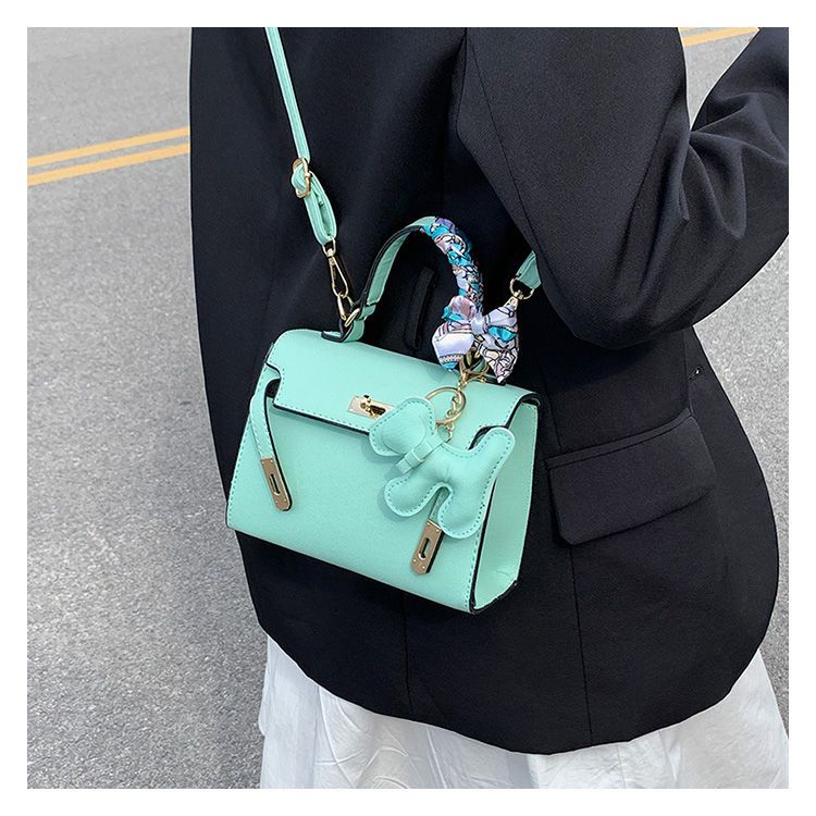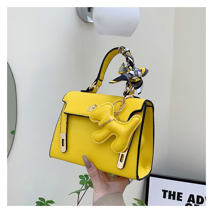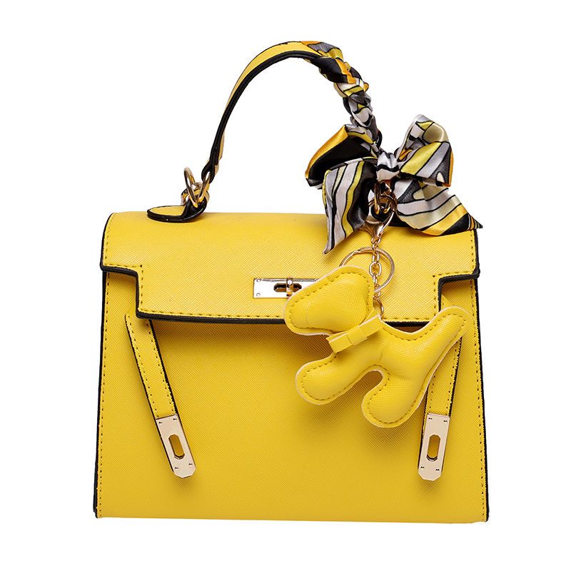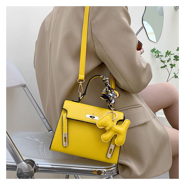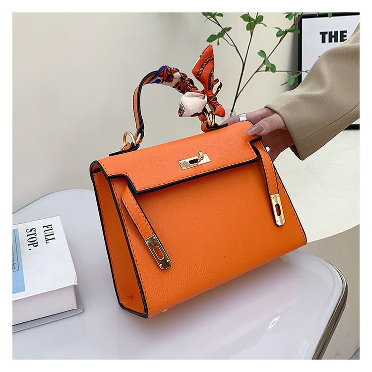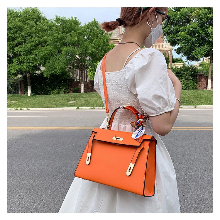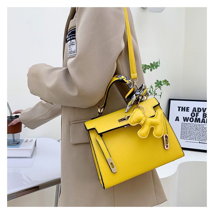 新款百搭大容量气质凯莉单肩包红色手提婚包丝巾小狗挂件斜挎小包