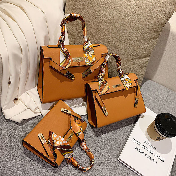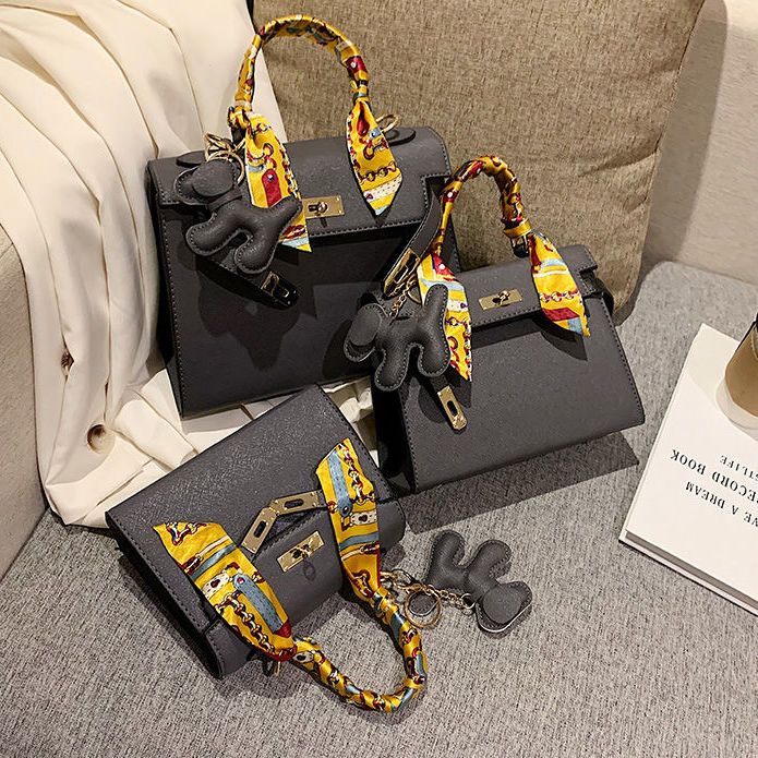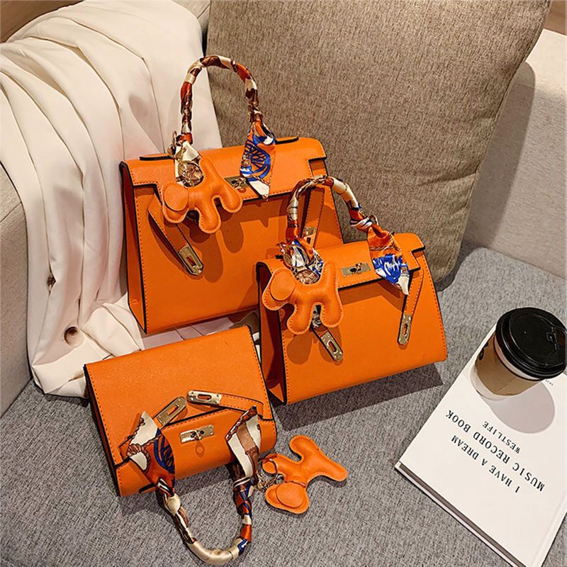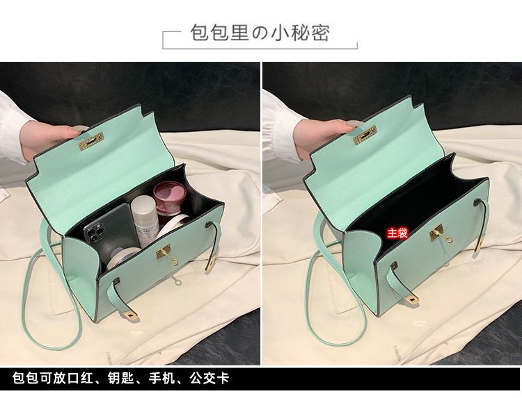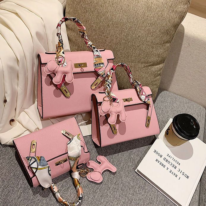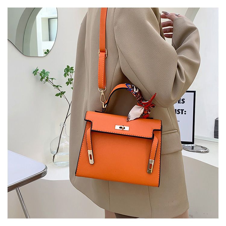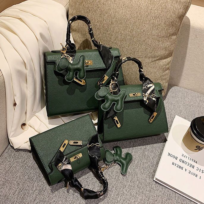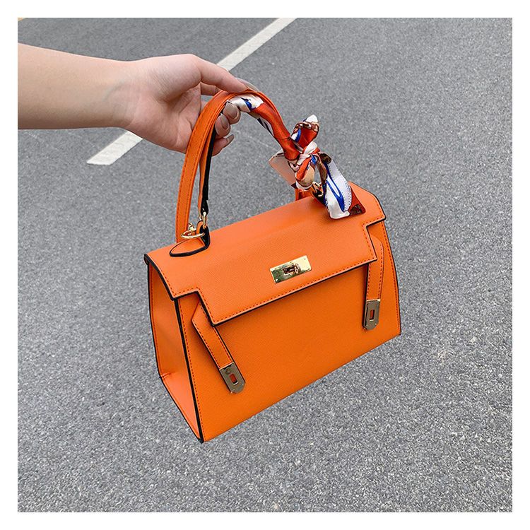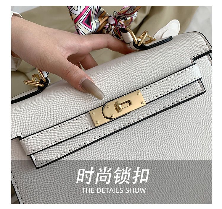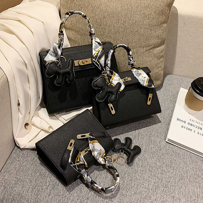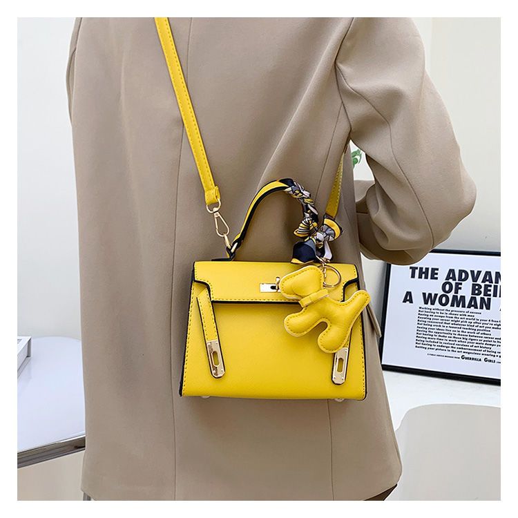 新款百搭大容量气质凯莉单肩包红色手提婚包丝巾小狗挂件斜挎小包