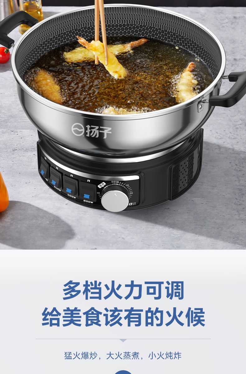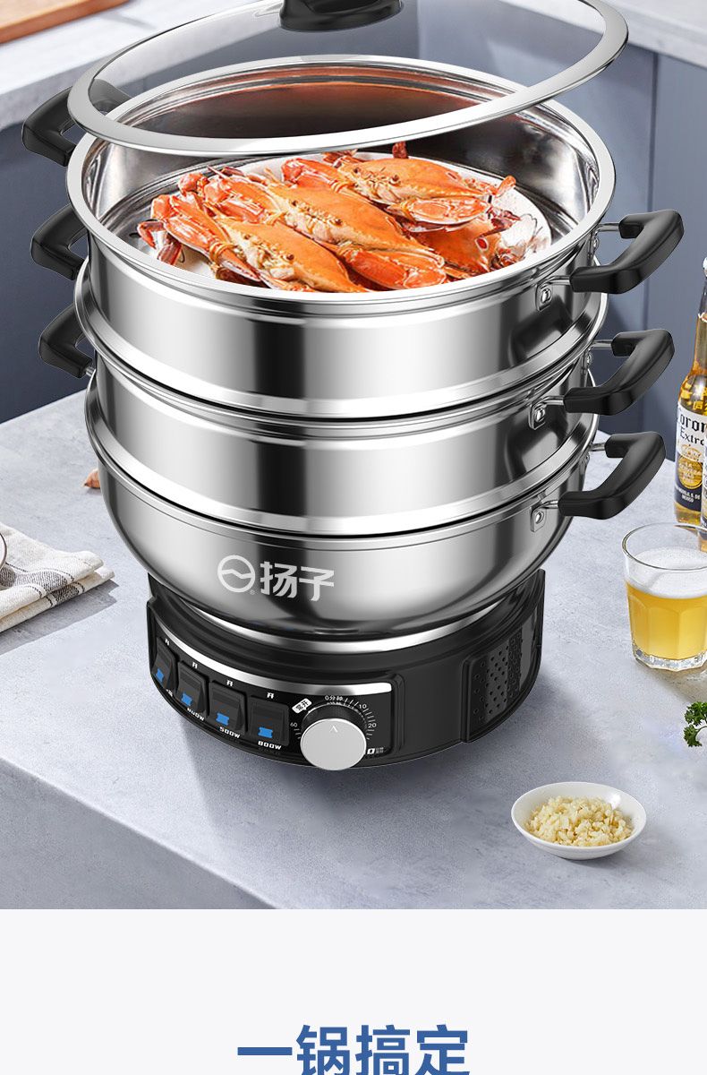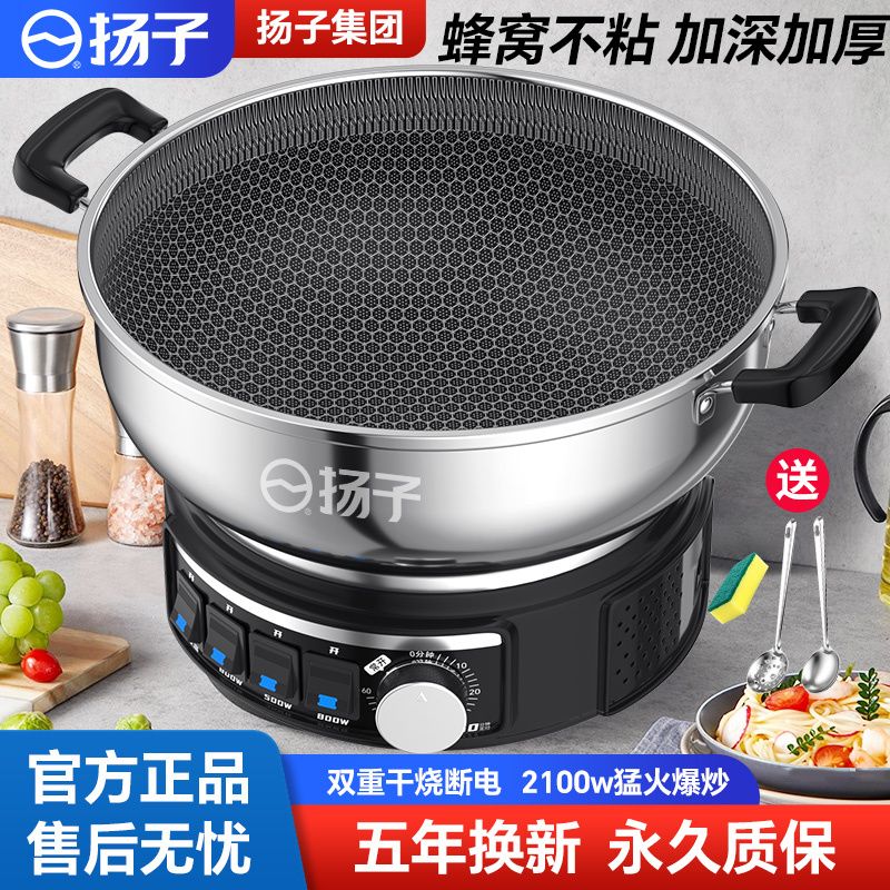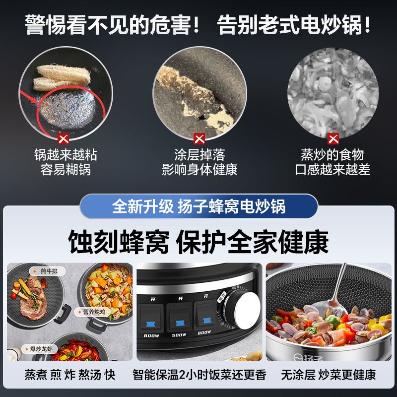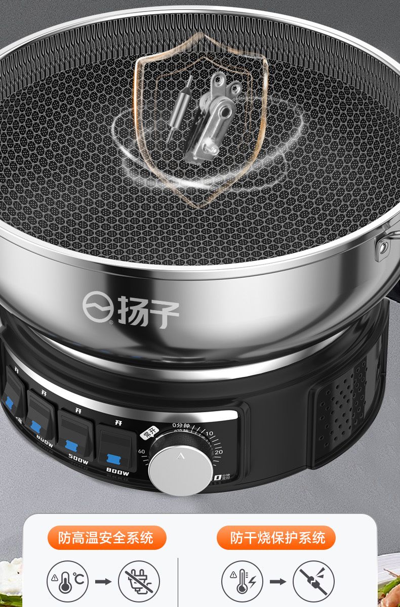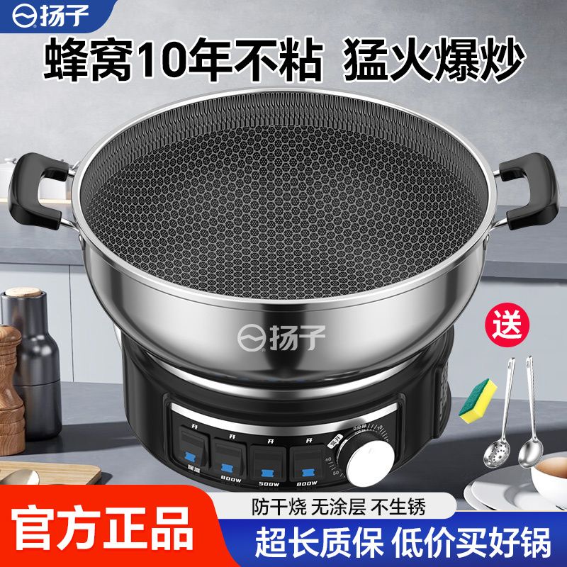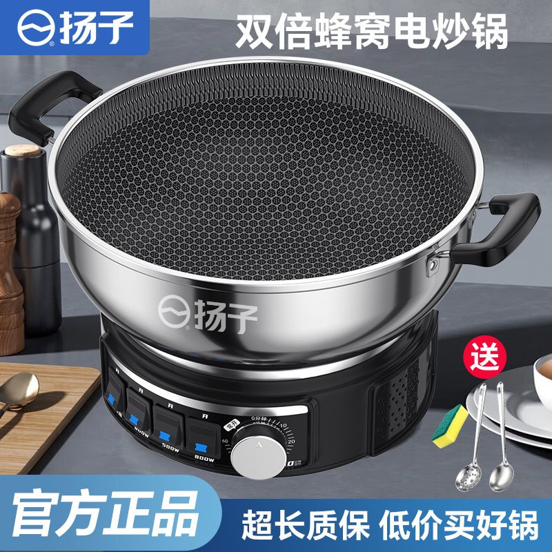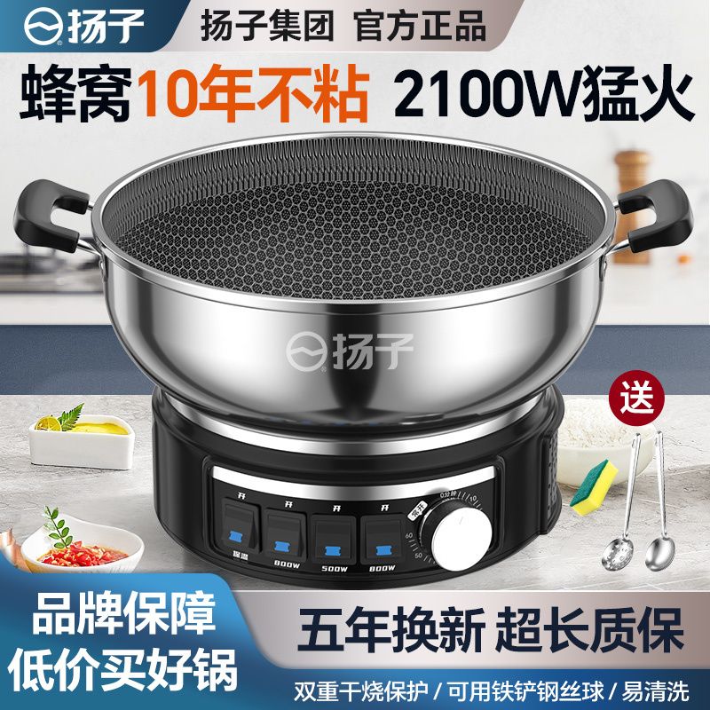 扬子蜂窝电炒锅多功能不粘家用电热锅蒸煮一体大功率电蒸锅万能锅