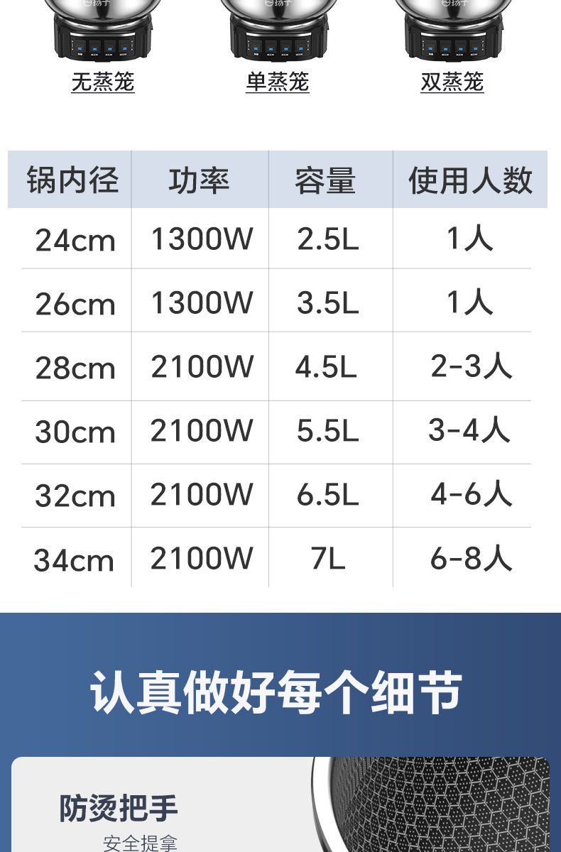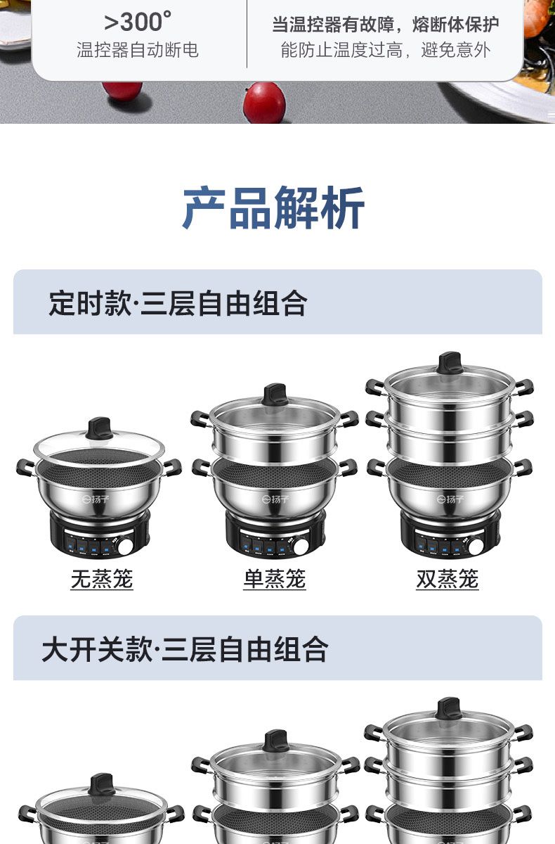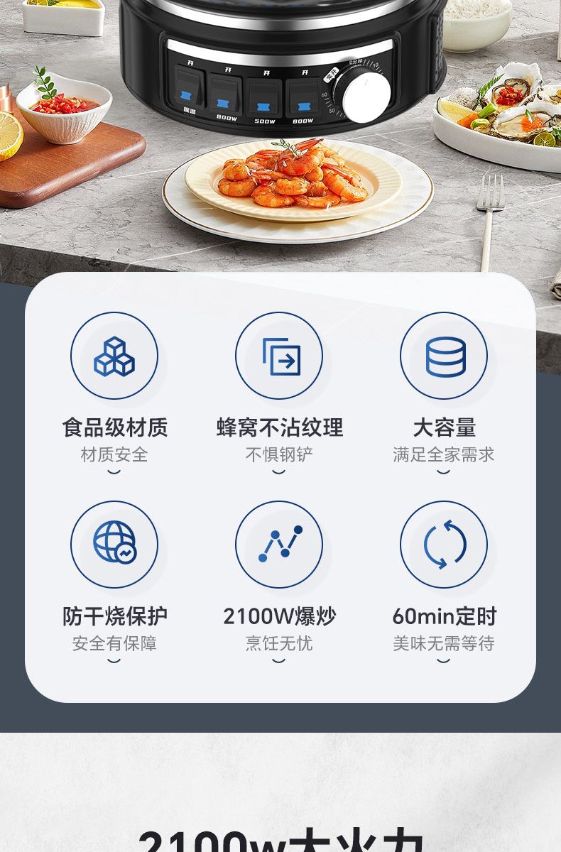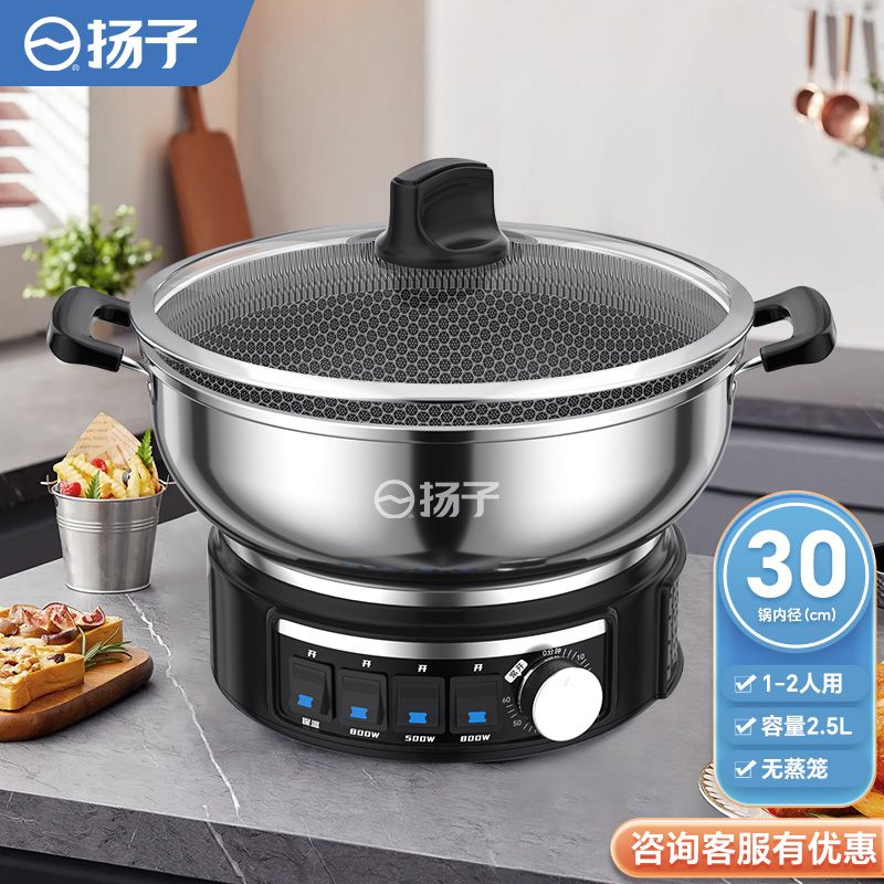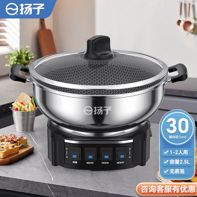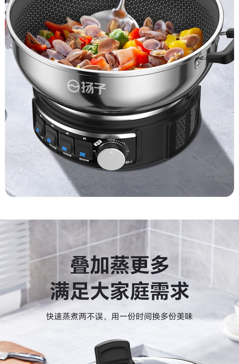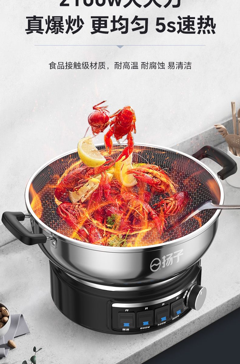 扬子蜂窝电炒锅多功能不粘家用电热锅蒸煮一体大功率电蒸锅万能锅