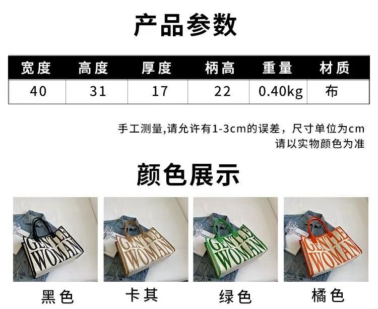 新款帆布包手提购物袋女大容量旅行单肩包百搭妈咪托特包时尚外出