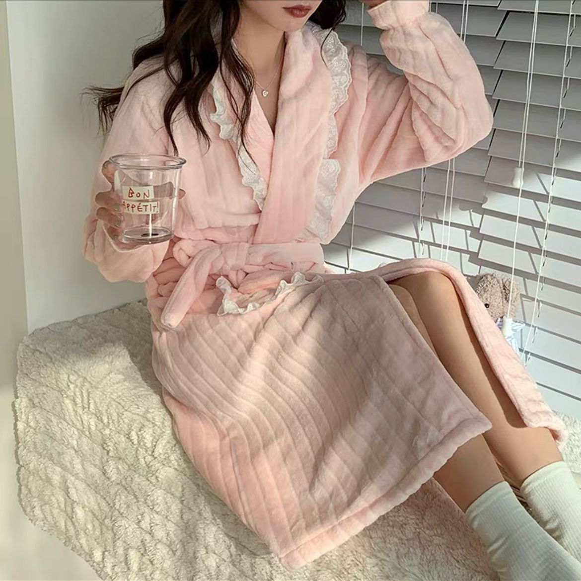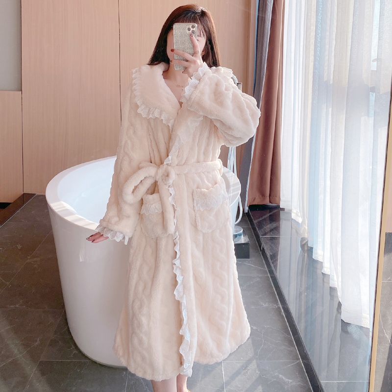 2024年新款睡袍女秋冬季甜美性感珊瑚绒加厚长款睡衣女春秋款浴袍