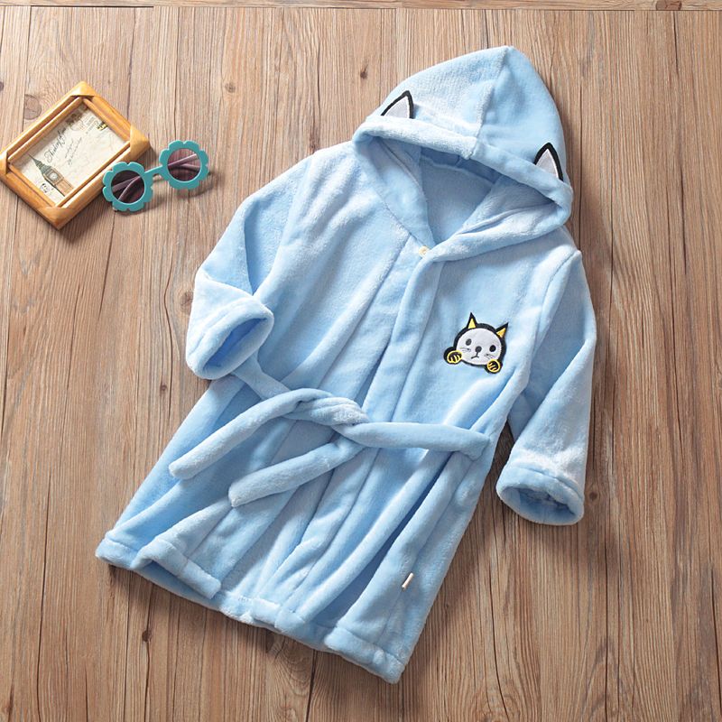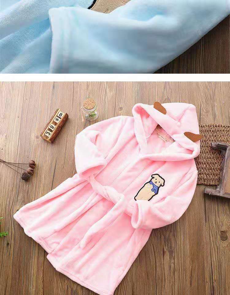 儿童睡袍法兰绒小孩宝宝婴儿加厚男童女童珊瑚绒睡衣秋冬四季浴袍