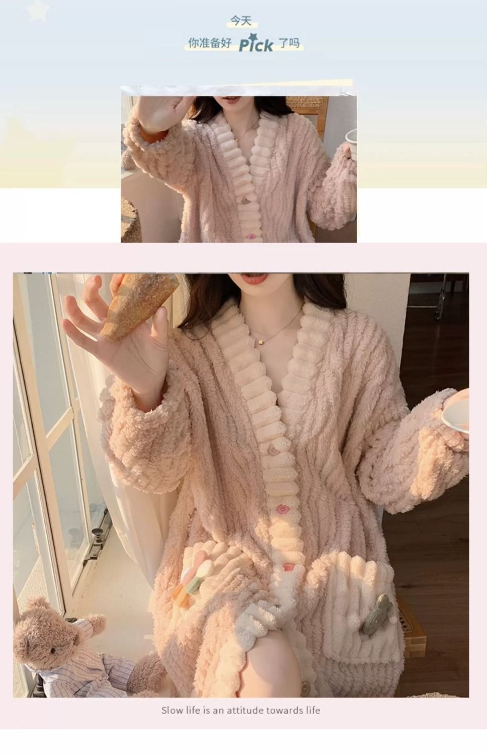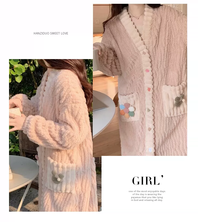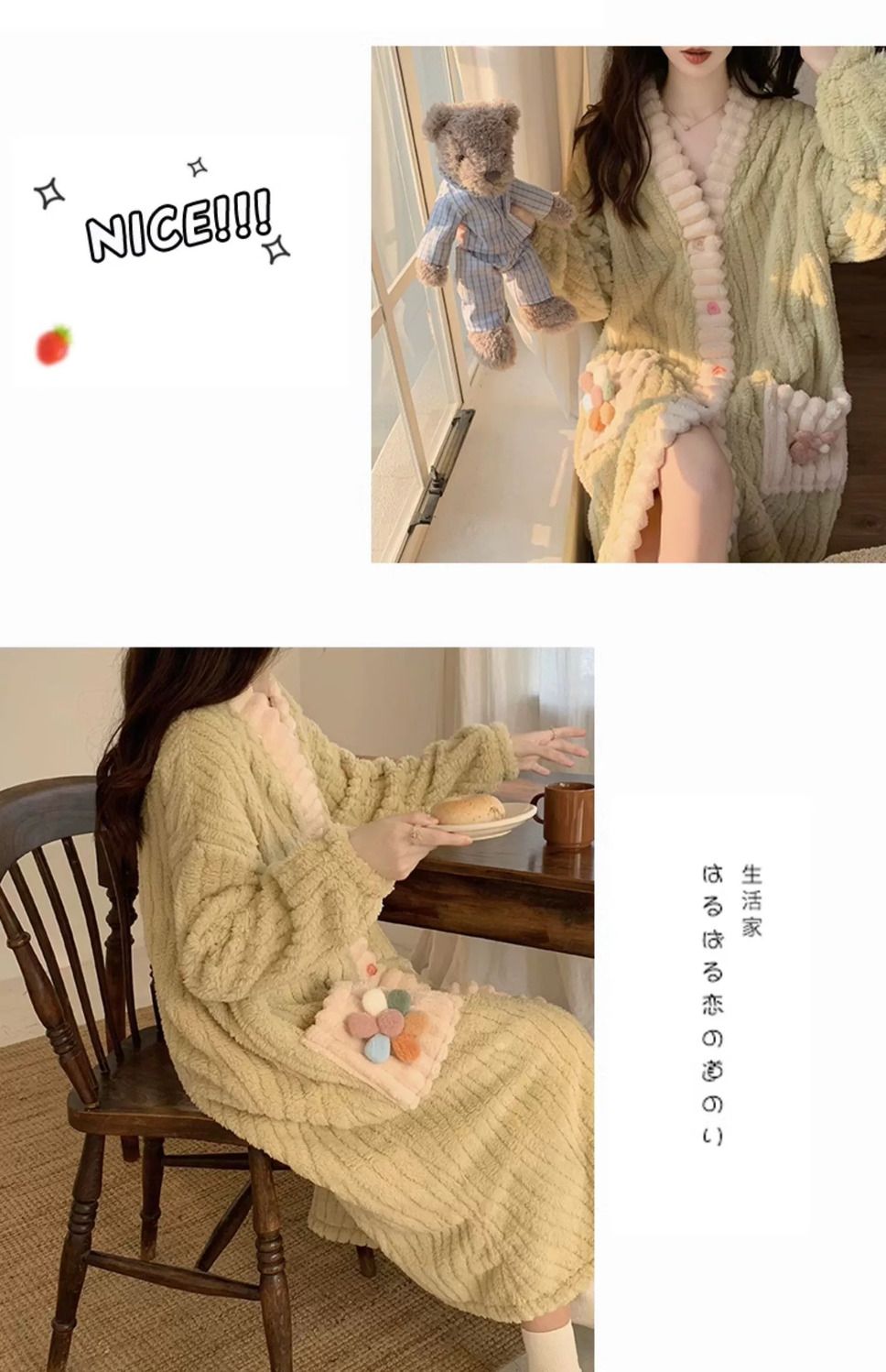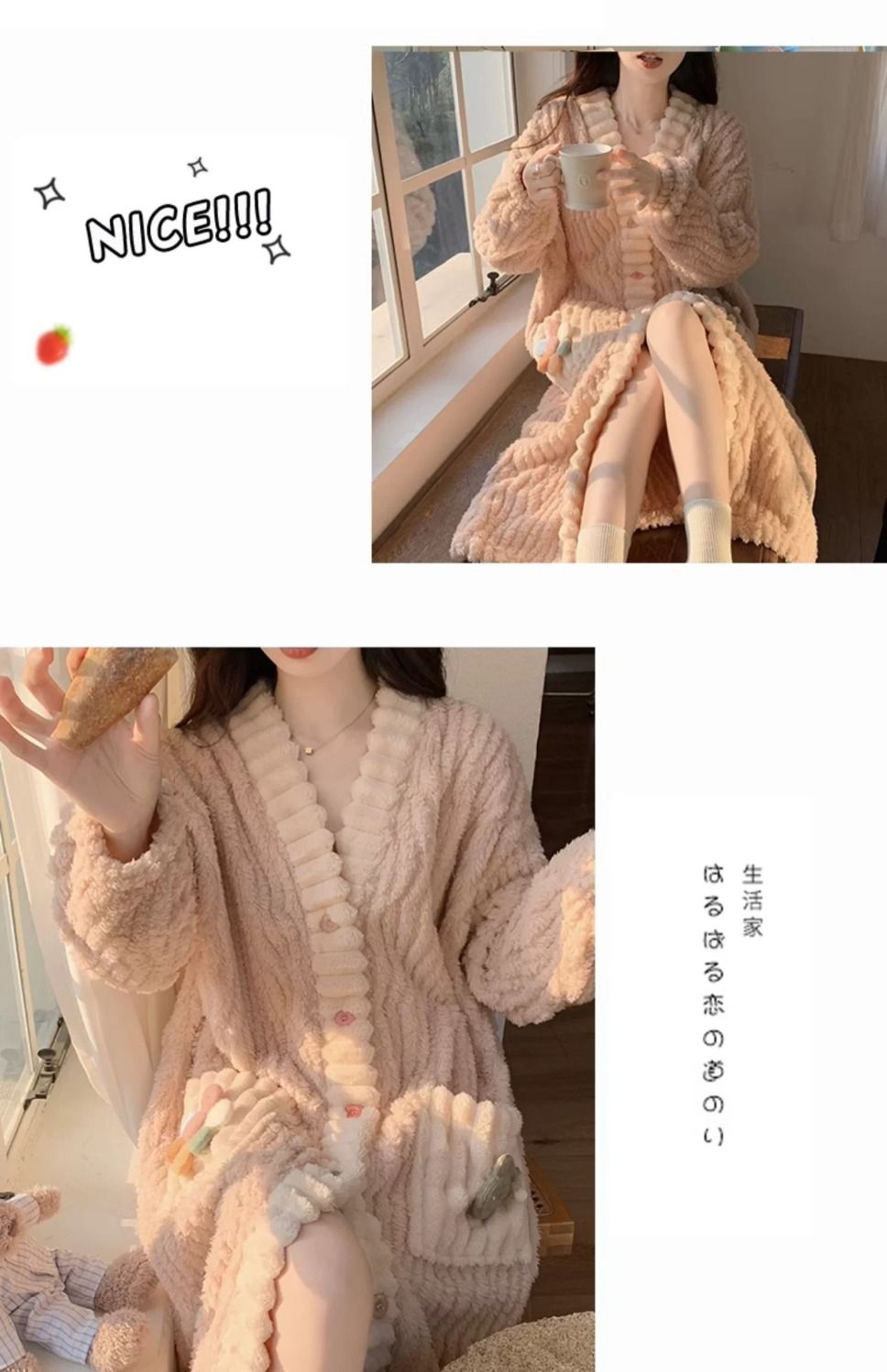 珊瑚绒睡袍女秋冬长款加厚加绒甜美可爱法兰绒浴袍冬季睡衣家居服