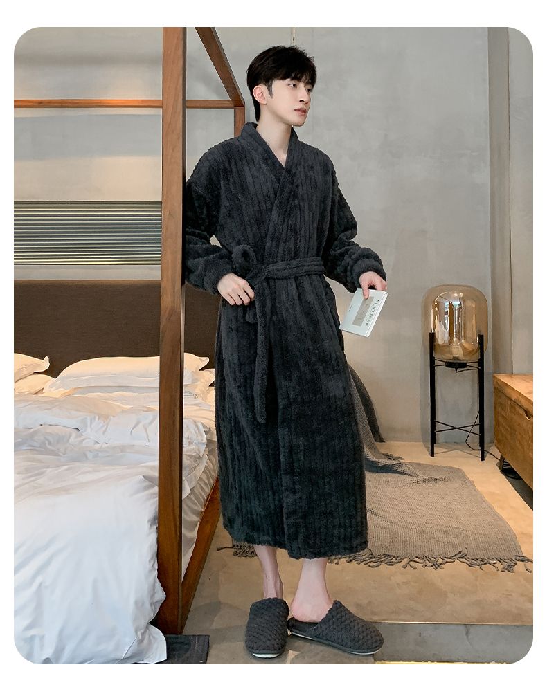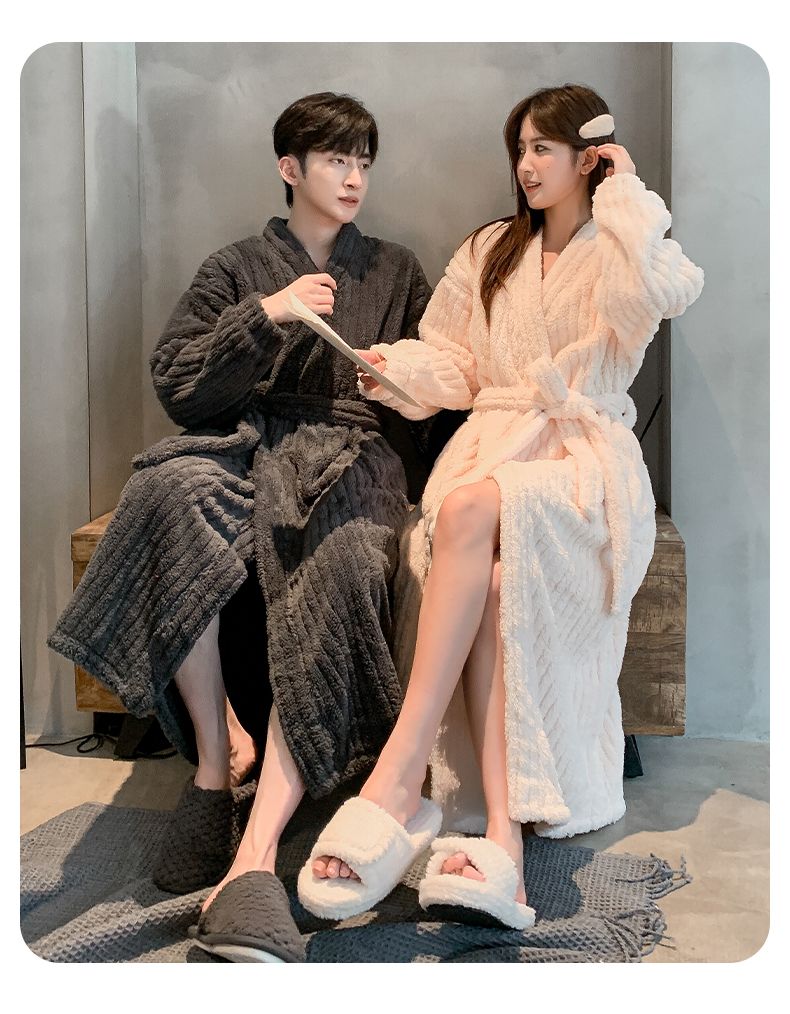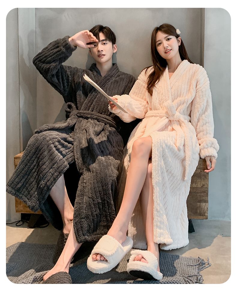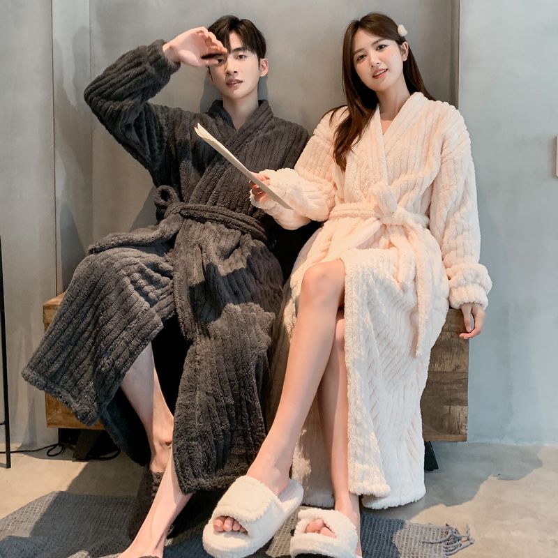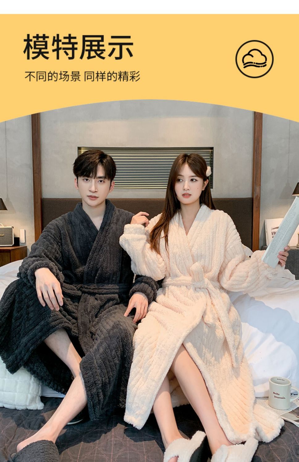 情侣睡袍女秋冬季加厚加绒长款珊瑚绒男士洗漱浴衣浴袍法兰绒睡衣