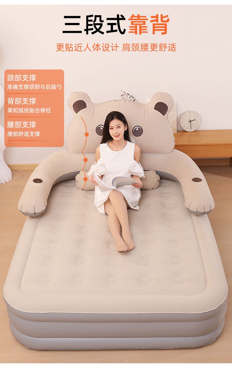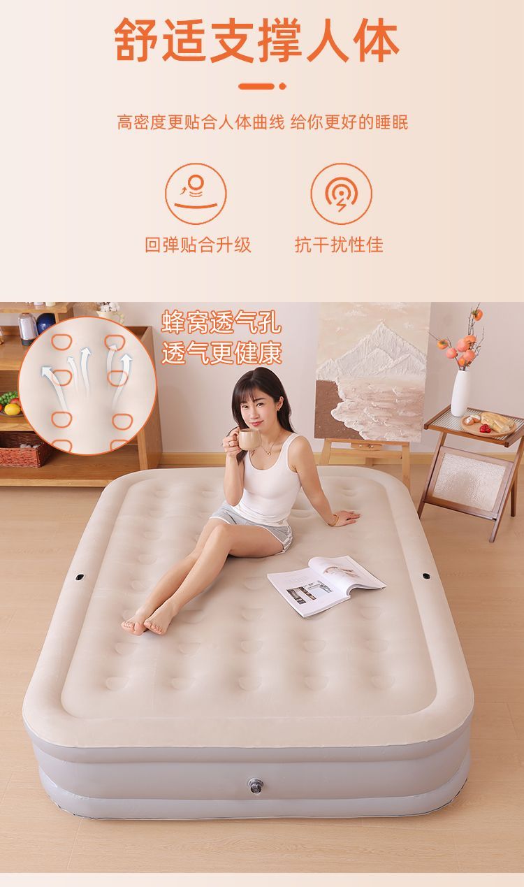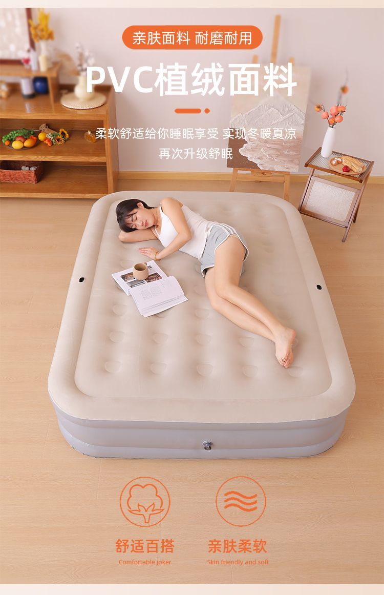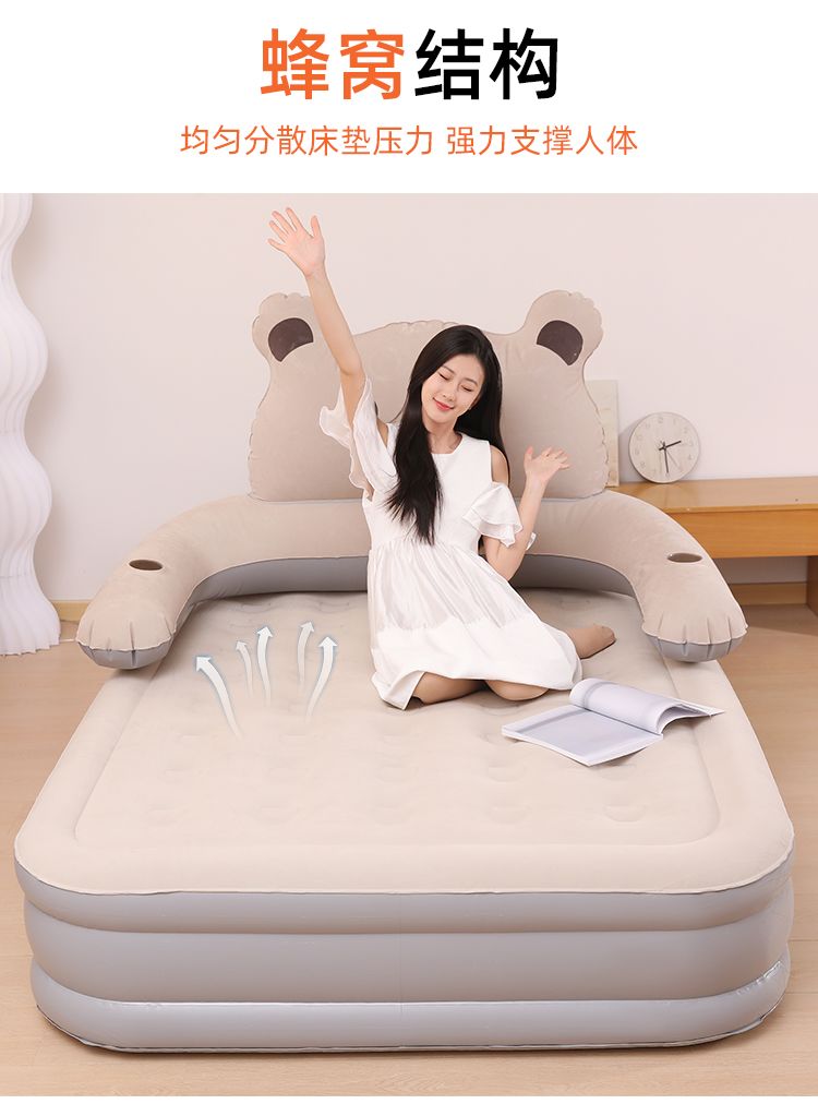 充气床单人双人地铺加厚植绒家用折叠床户外露营便携充气睡垫加高