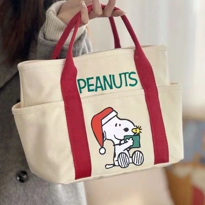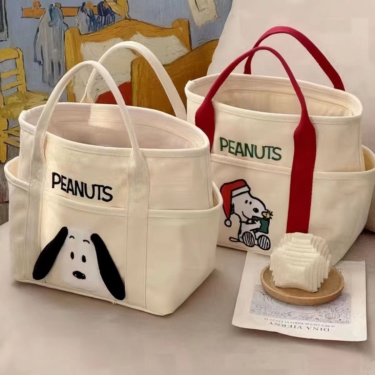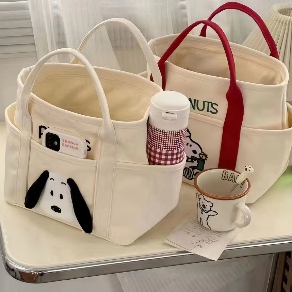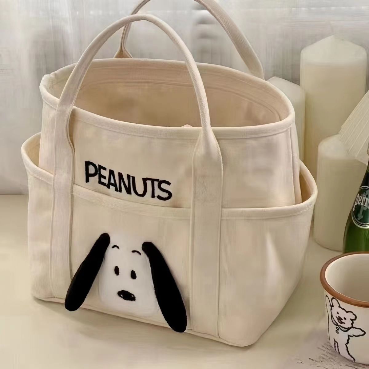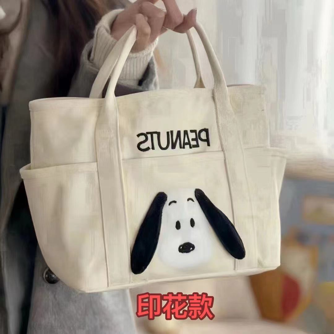 帆布包手提包百搭大容量便当史努比手提袋可爱卡通通勤多功能妈咪