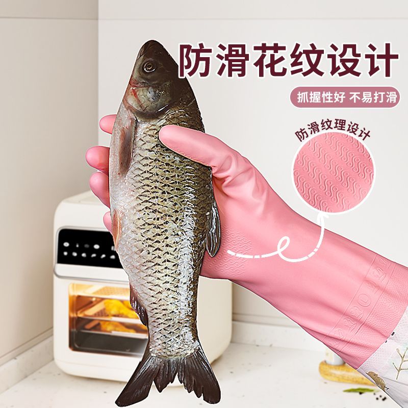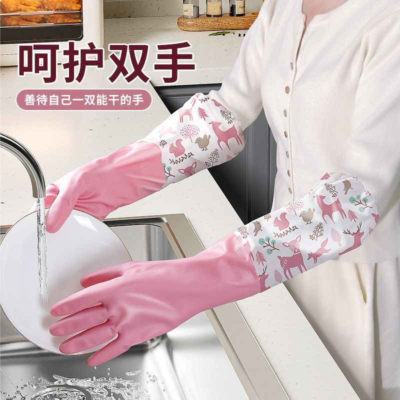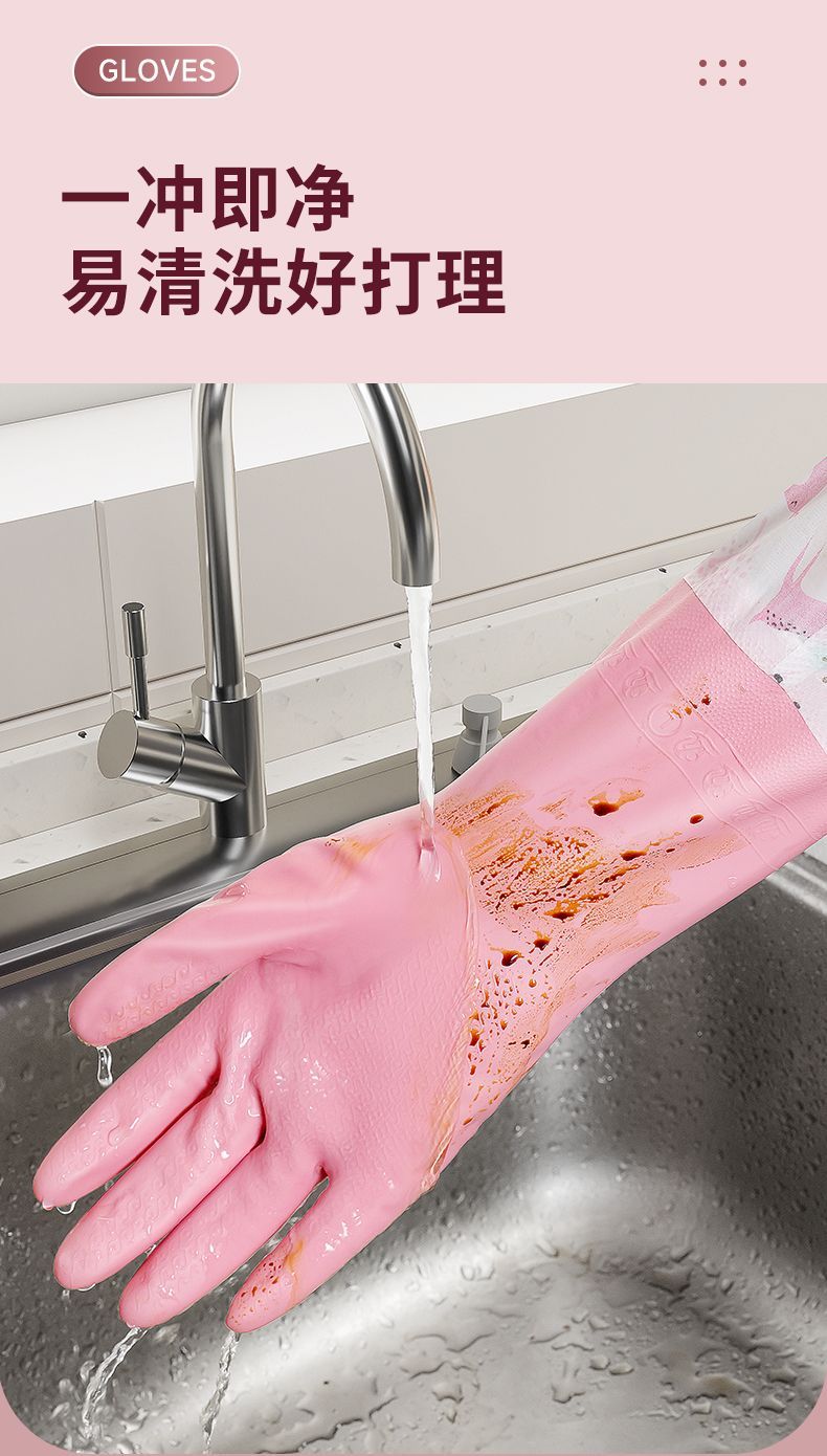 洗碗加绒家务手套厨房洗衣服加厚刷碗清洁乳胶防水耐用橡胶保暖