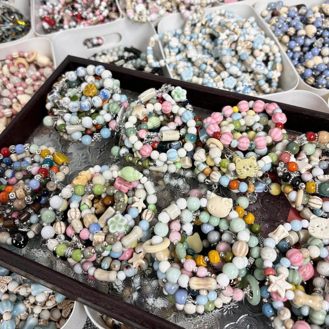 爆款批发摆摊景德镇陶瓷手链50条精品款新中式原创手链diy手工ins